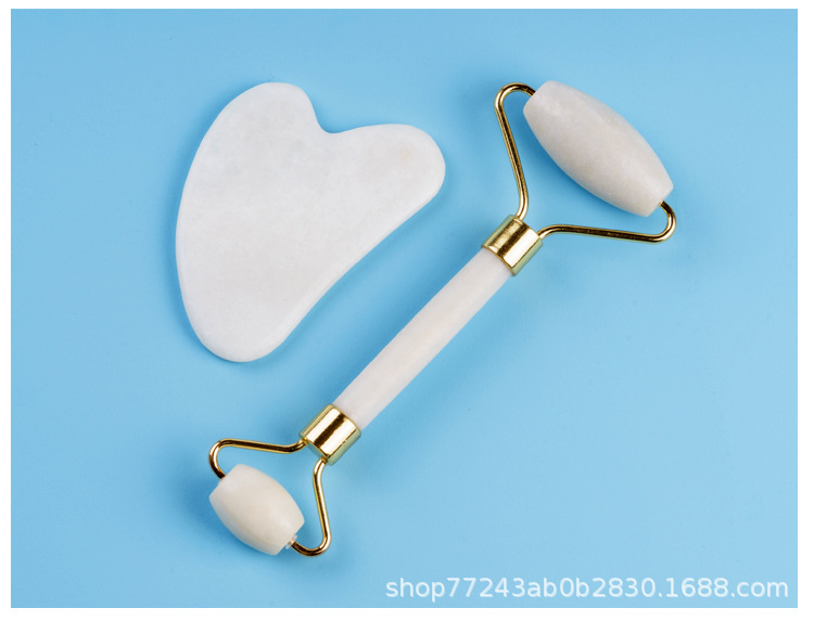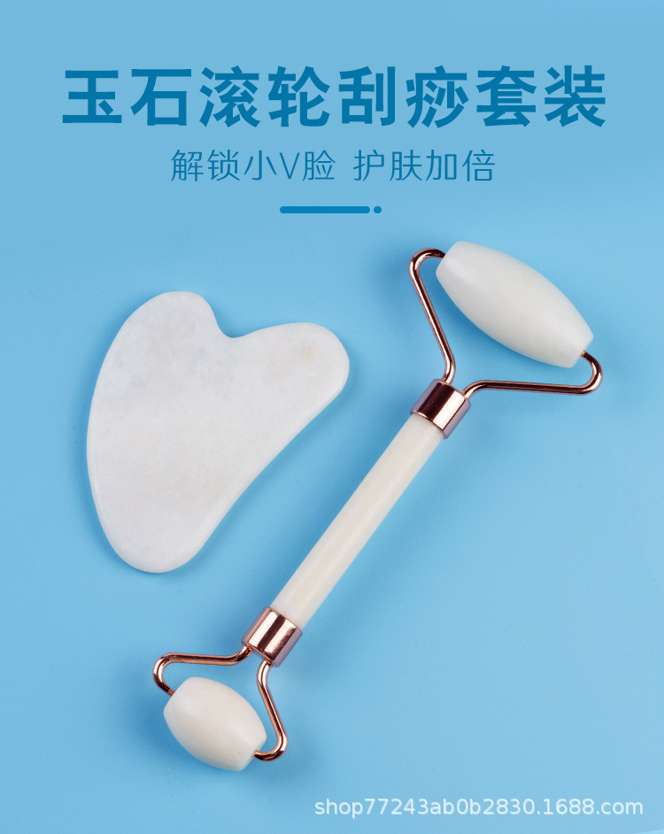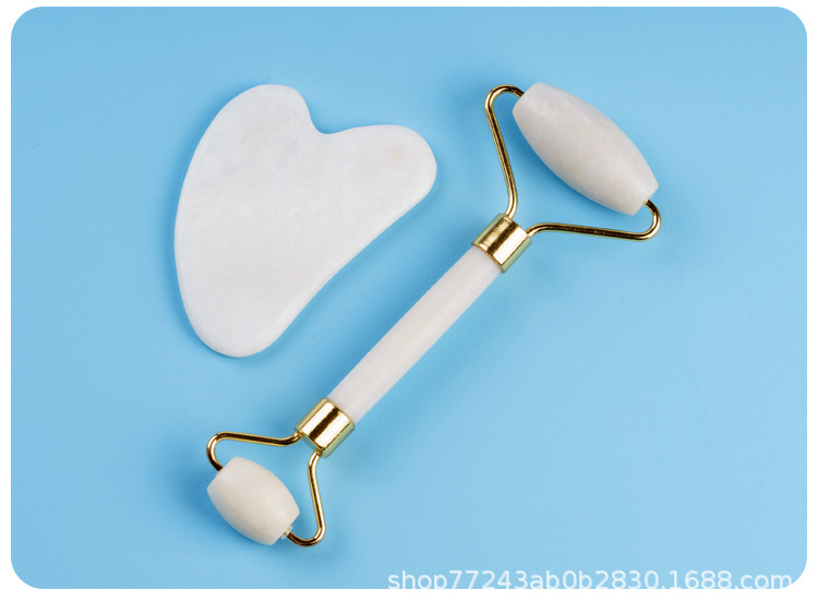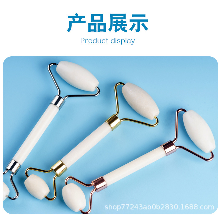 仪单孔按摩器玉石滚轮白色双头玉器美容器便携式贴合肌肤滚脸器