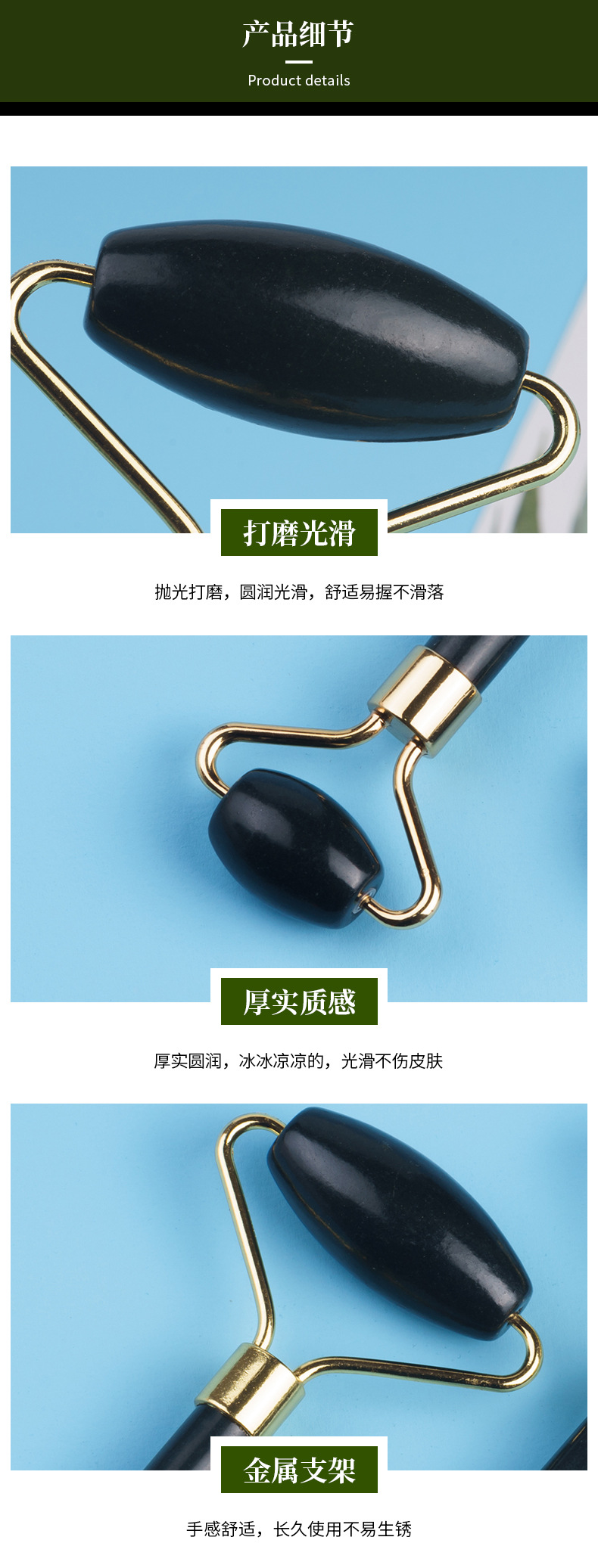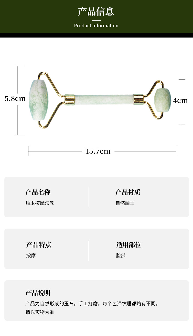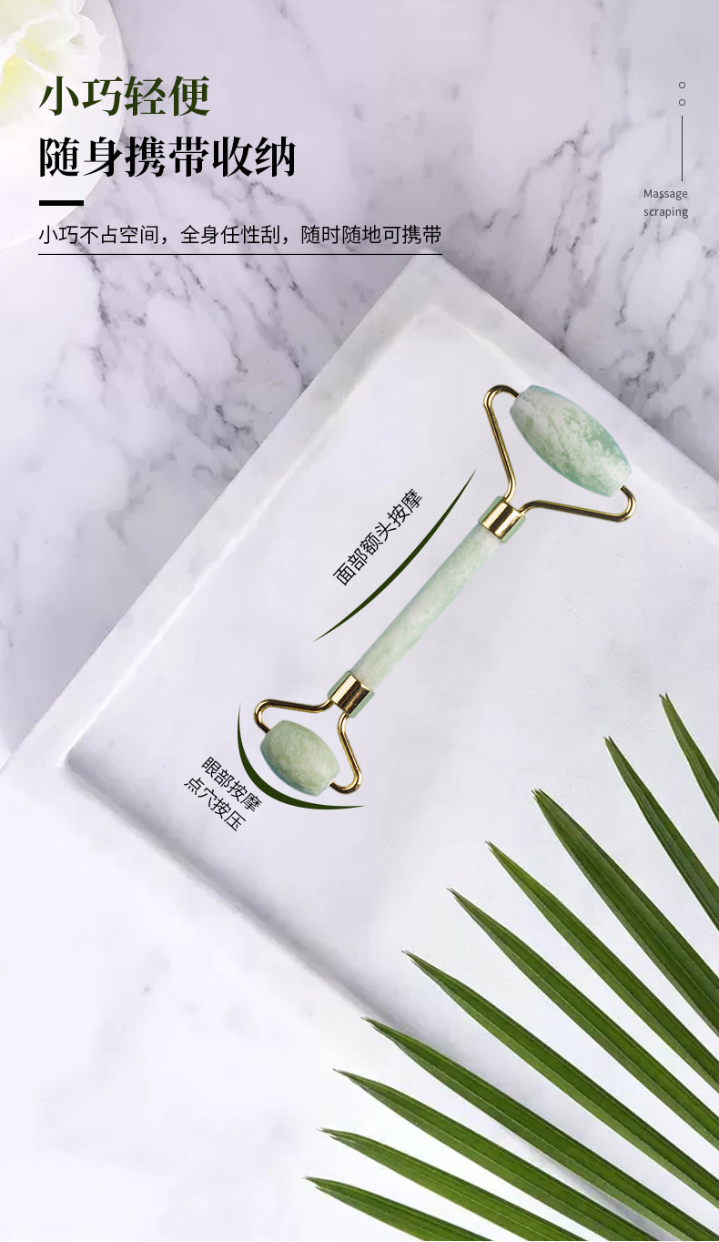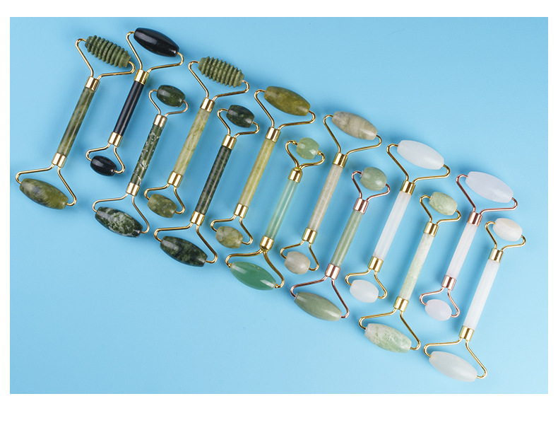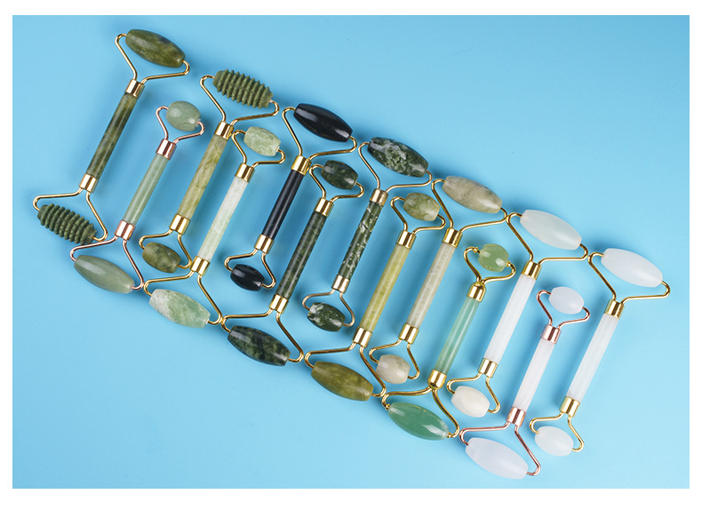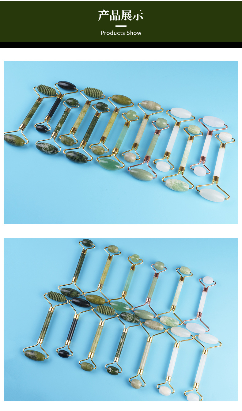 金属手柄脸部双头玉滚轮多款玉石按摩套装 冰凉圆润脸部岫玉滚轮