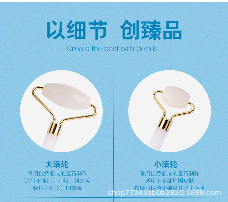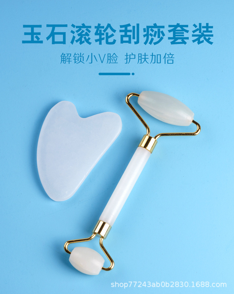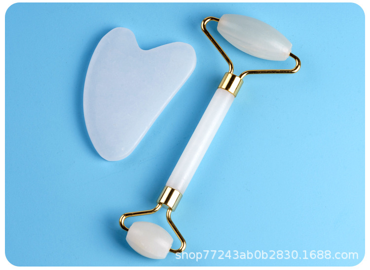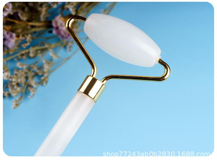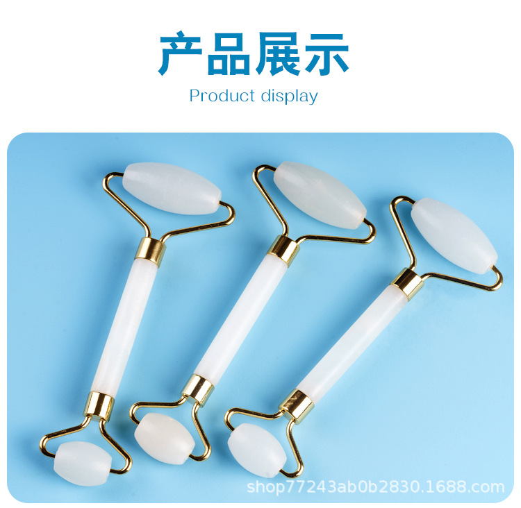 供应会销礼品厚实圆润玉器美容器玉石滚轮按摩器白色双头滚脸器仪