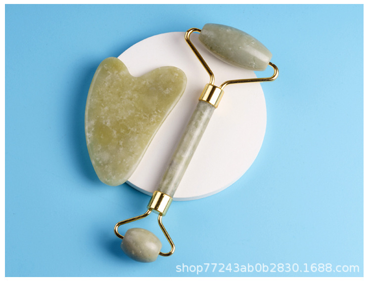 玉器批发会销礼品跨境玉石美容器玉石滚轮按摩器滚脸器仪白色双头