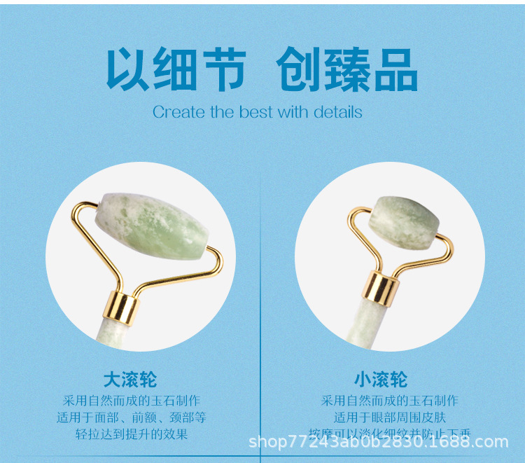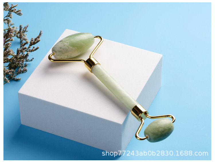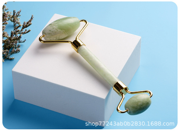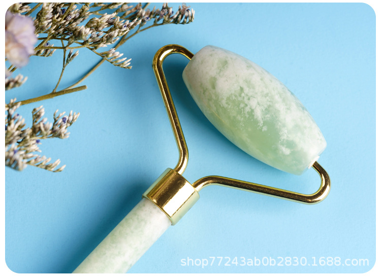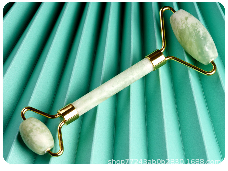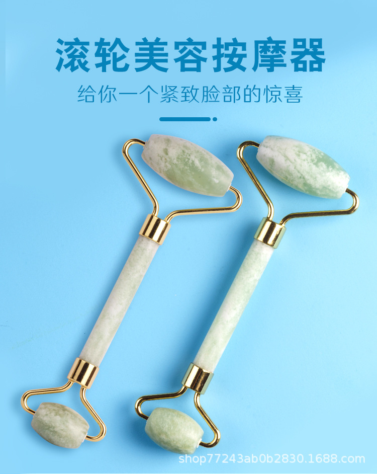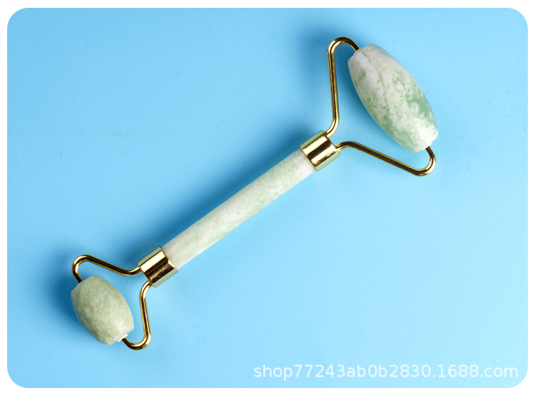 批发会销礼品玉石滚轮美容器翡翠色双头按摩器滚脸器仪便携式玉器