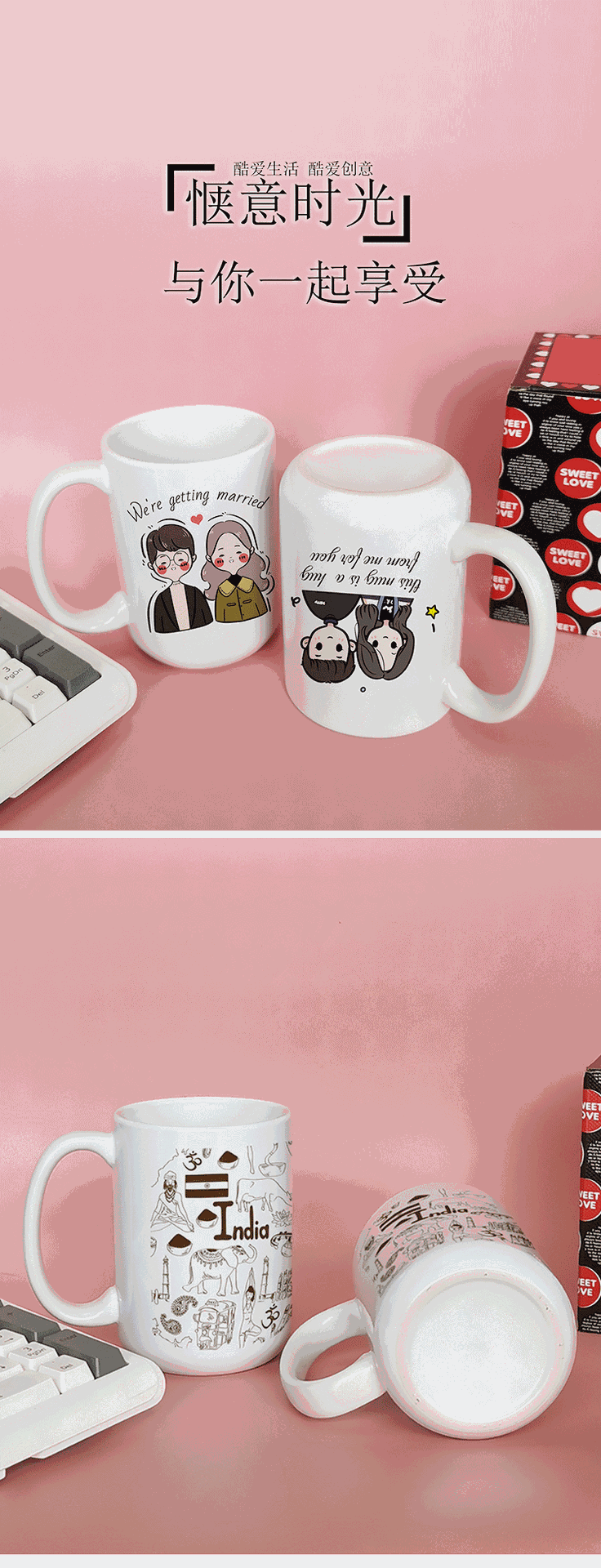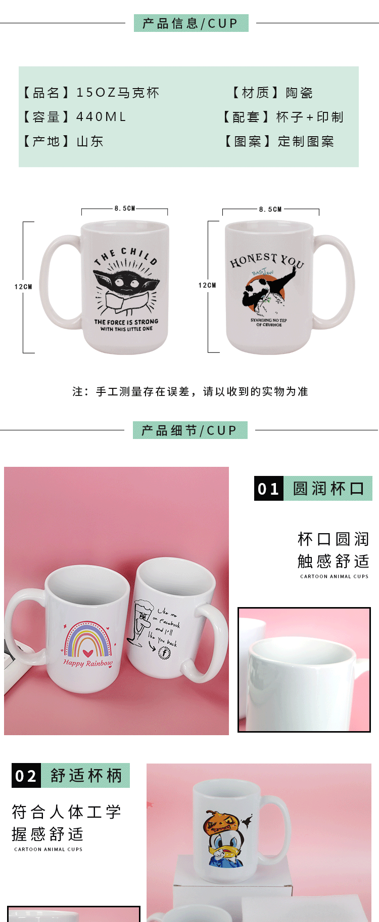 亚马逊15OZ陶瓷杯子高颜值ins风大容量水杯家用办公室马克杯批发