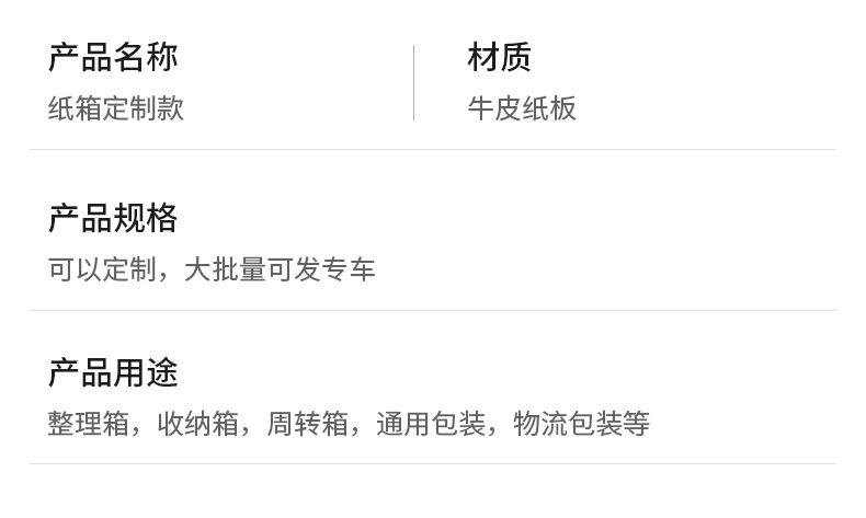 - 规格型号:纸箱定制款;定制