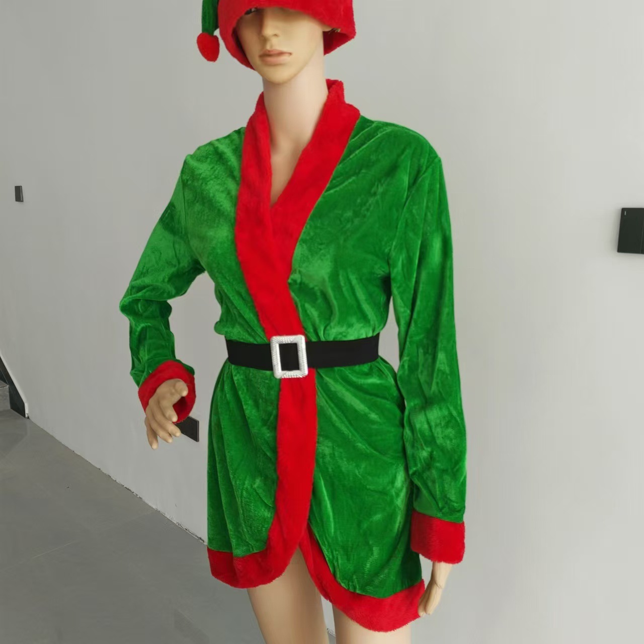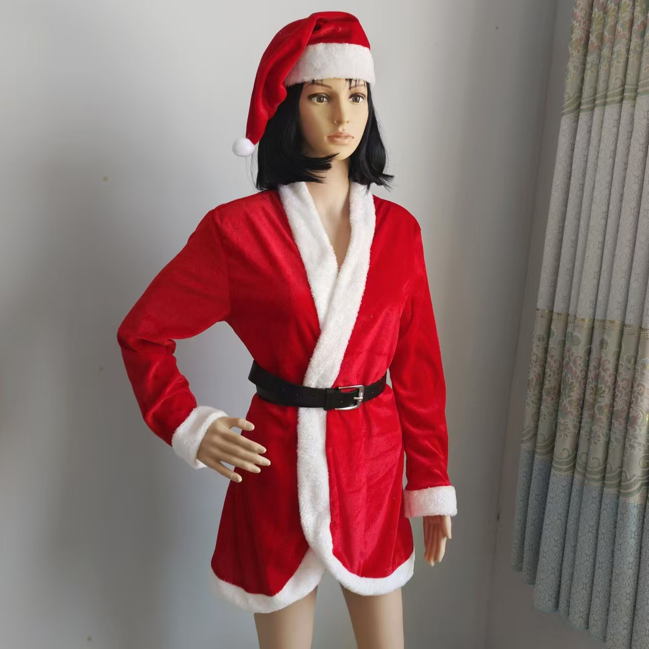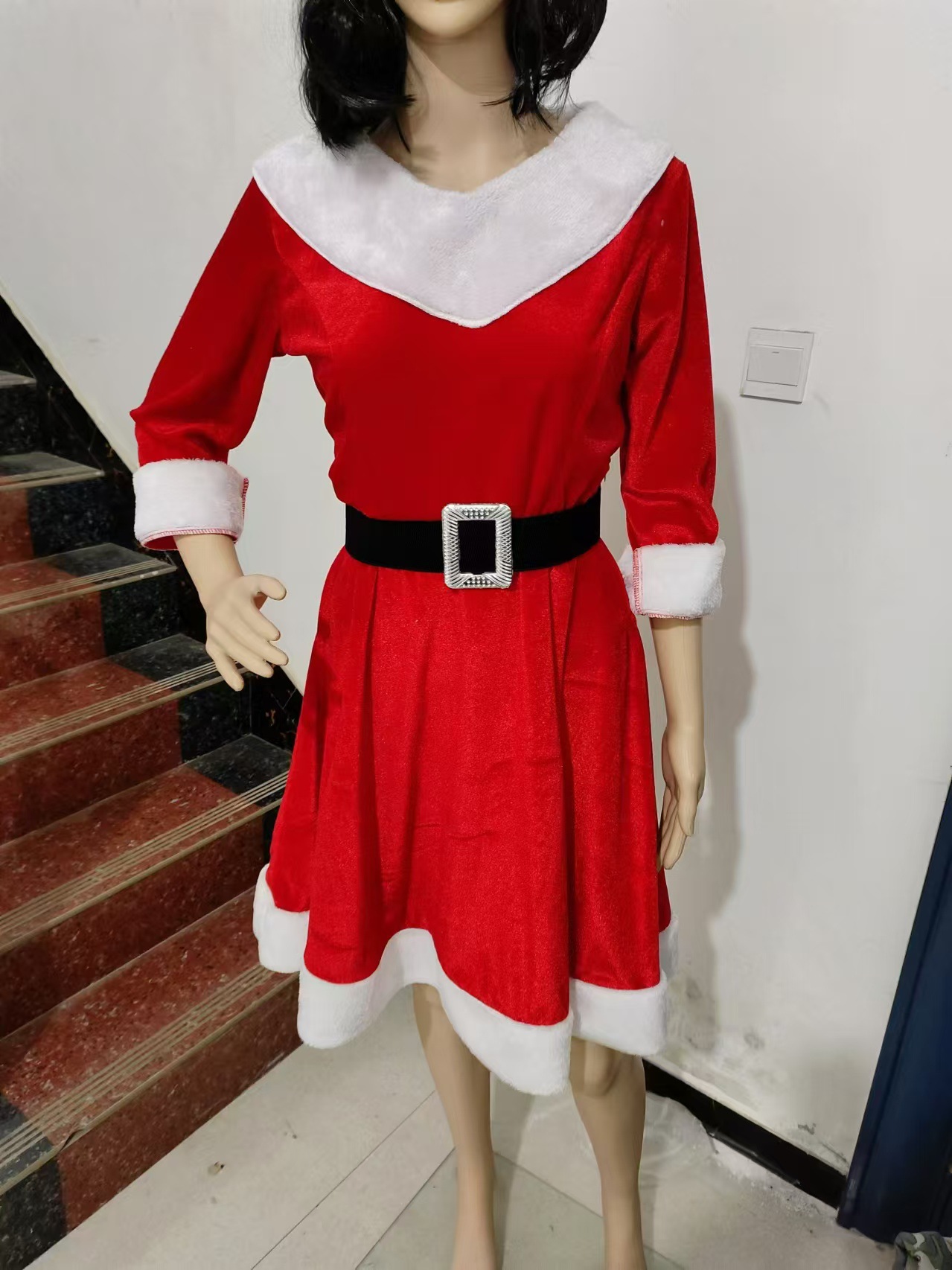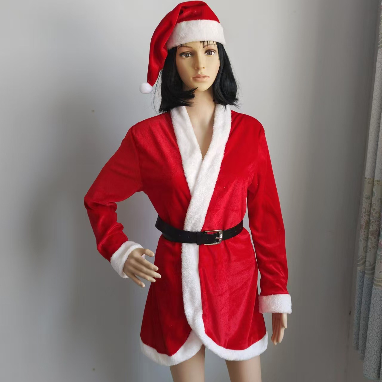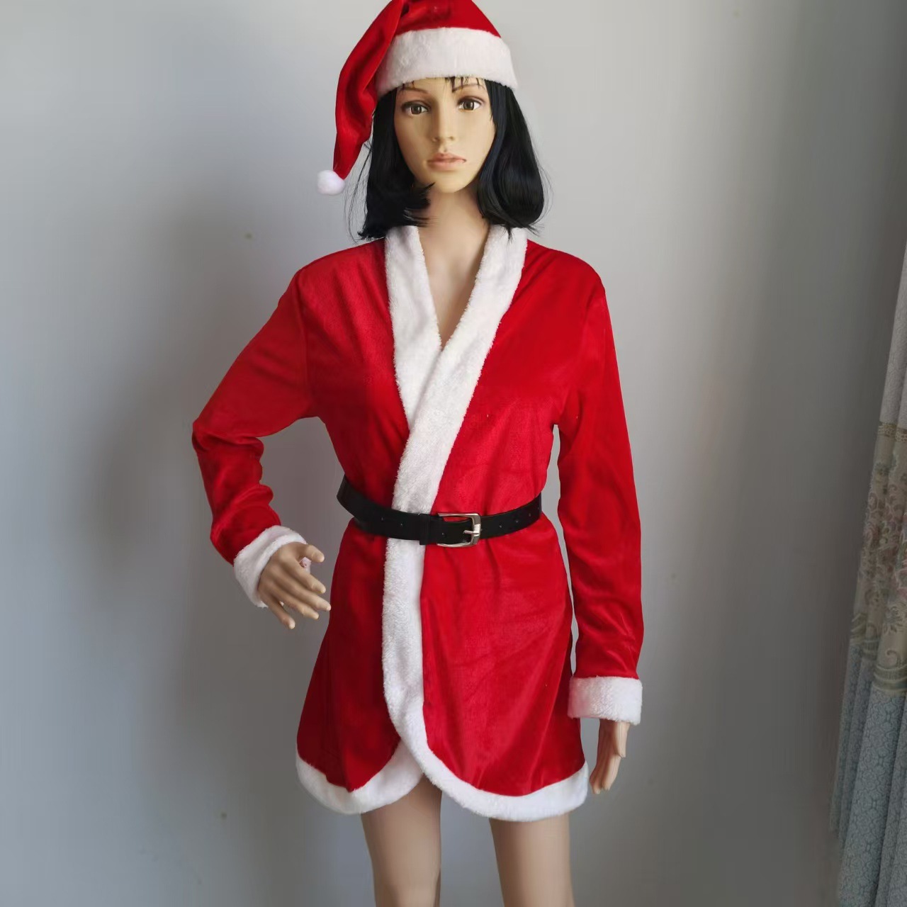 新款圣诞服裙女成人性感圣诞节表演服装圣诞老人红色衣服演出服饰