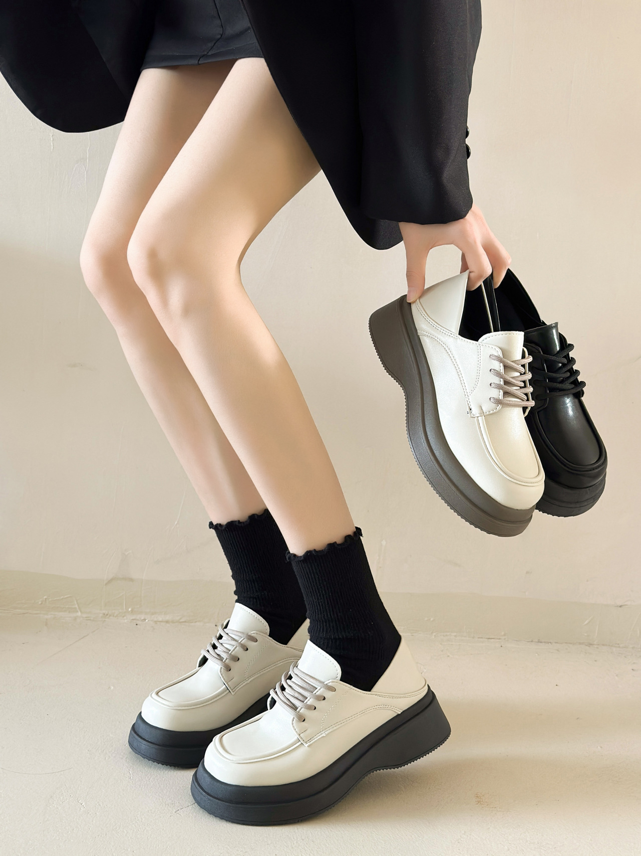 - 鞋跟形状:厚底