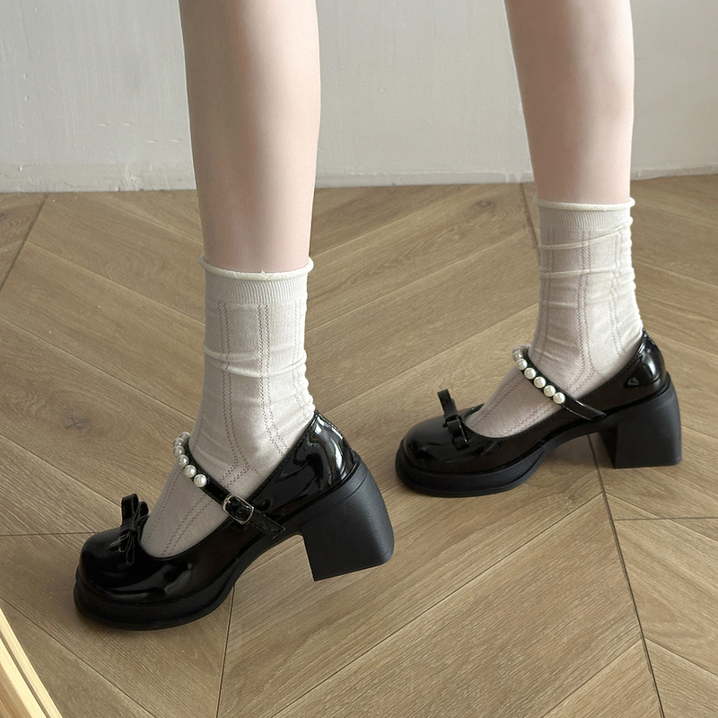 厚底玛丽珍粗跟复古玛丽珍时尚英伦风新款蝴蝶结日系jk小皮鞋女鞋