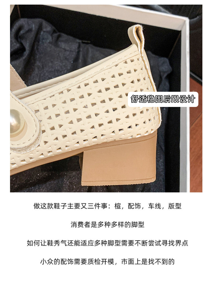 夏季镂空渔网鞋一字带玛丽珍鞋浅口单鞋2025年新款洞洞罗马凉鞋女