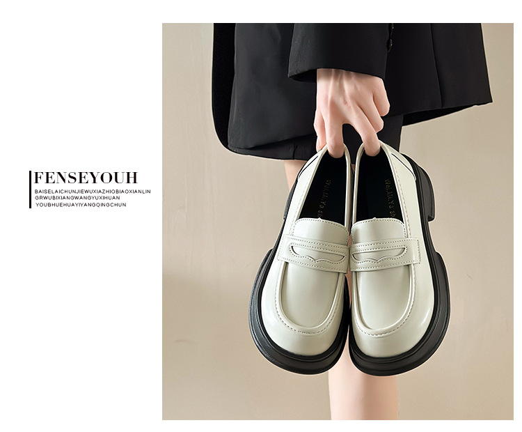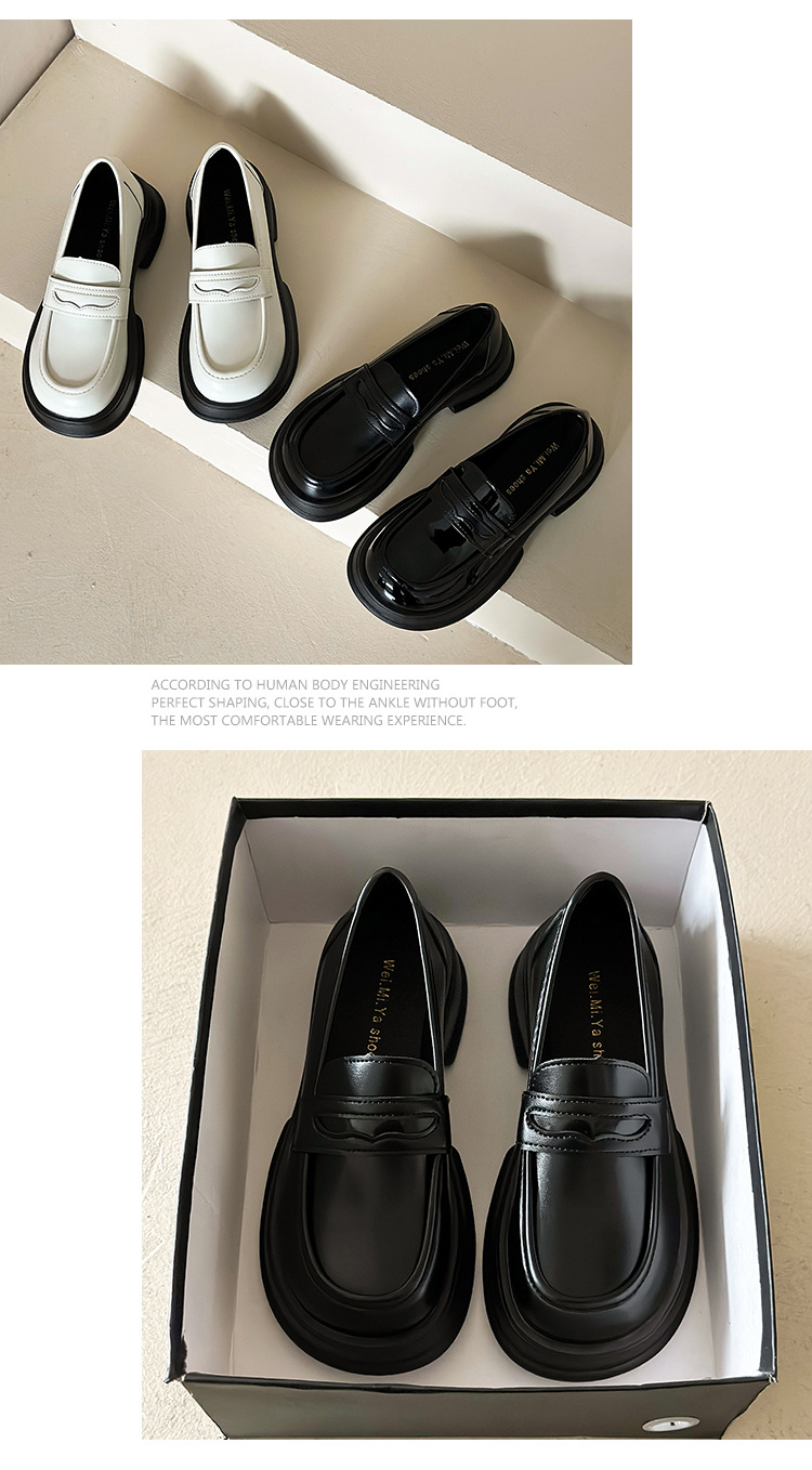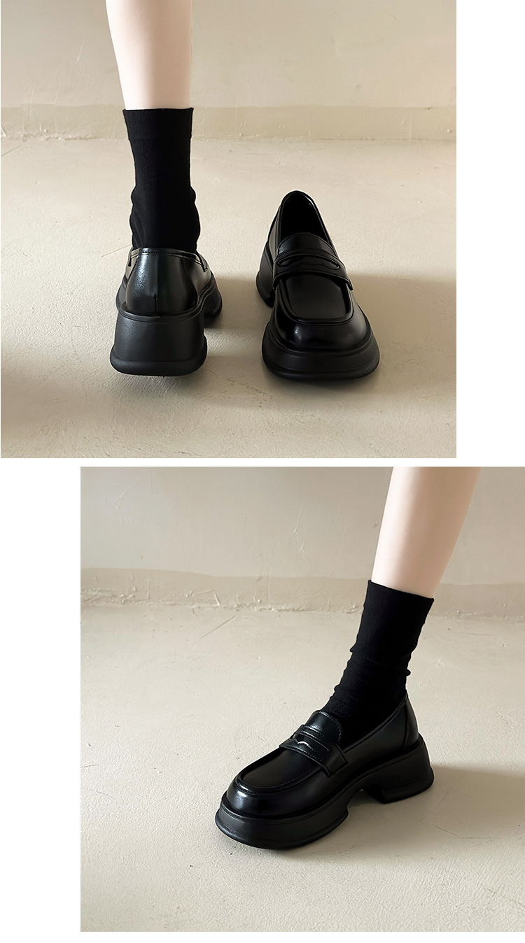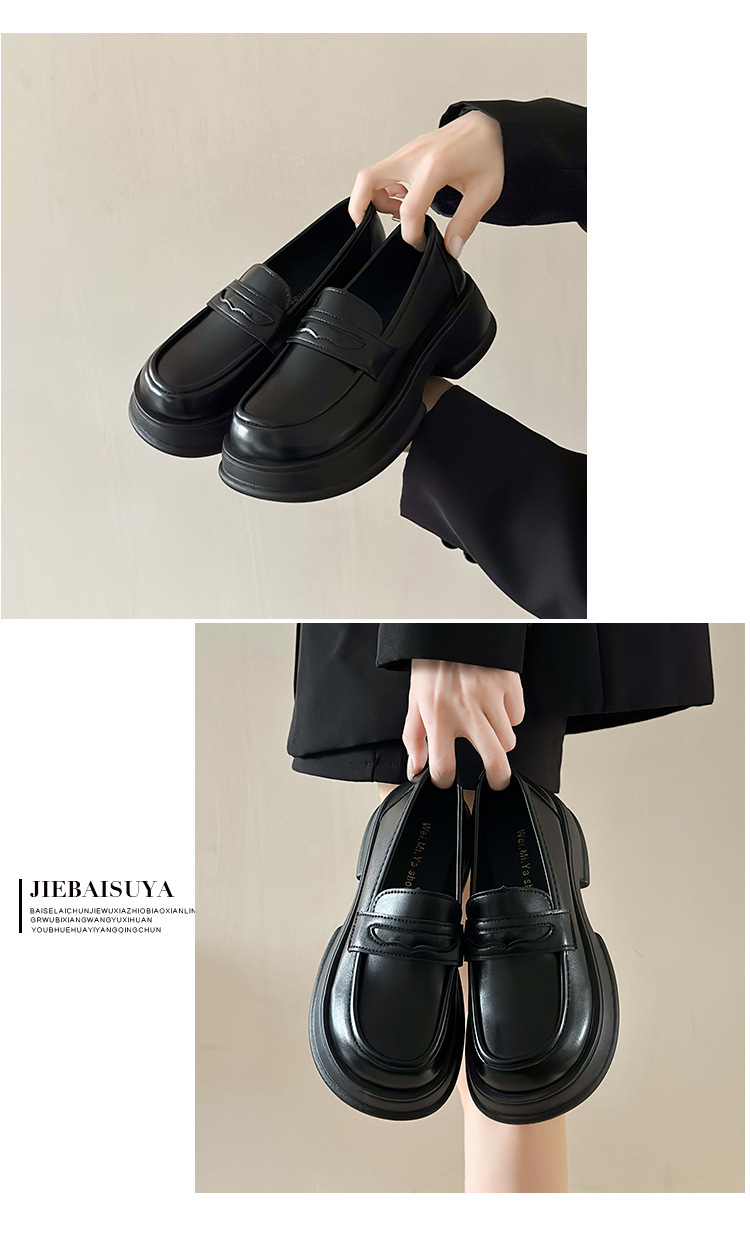 小皮鞋女2025新款英伦风jk粗跟厚底乐福鞋女法式粗跟黑制服小皮鞋