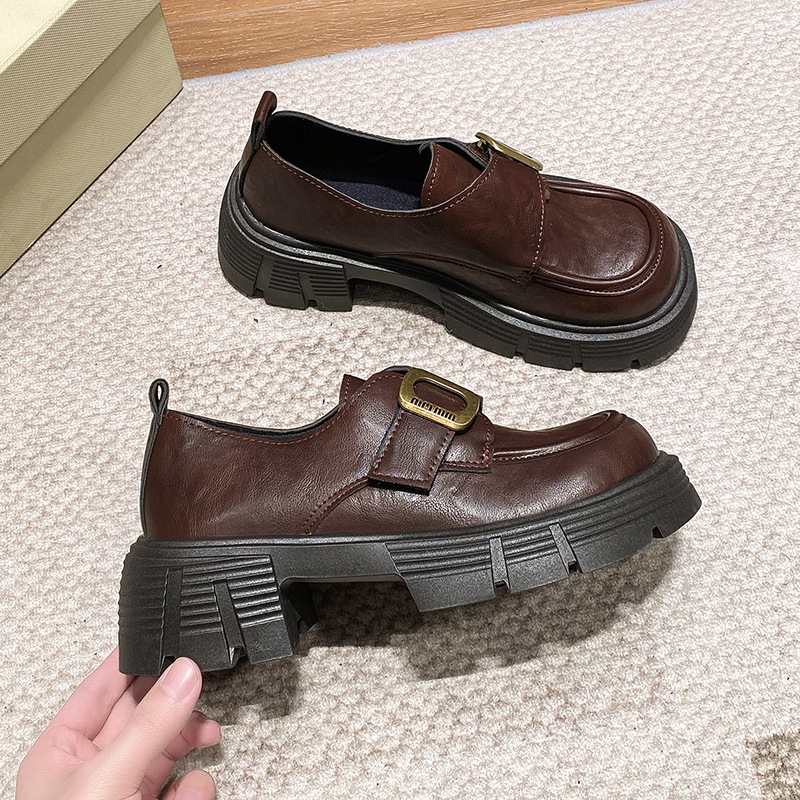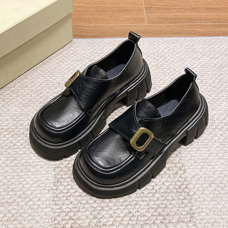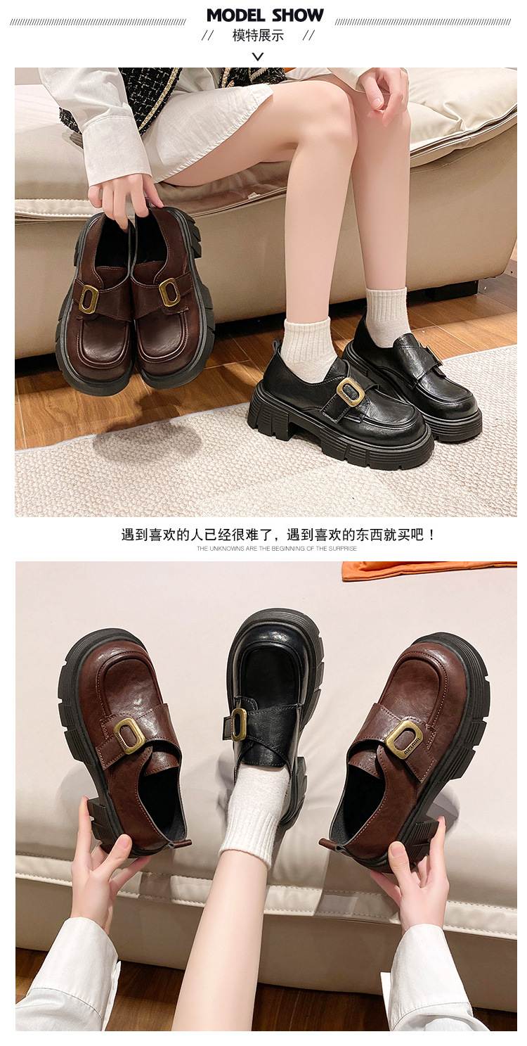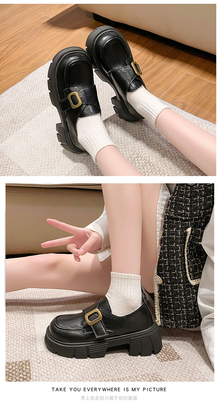 学院风厚底粗跟乐福鞋女2025新款复古英伦风百搭魔术贴小皮鞋女鞋