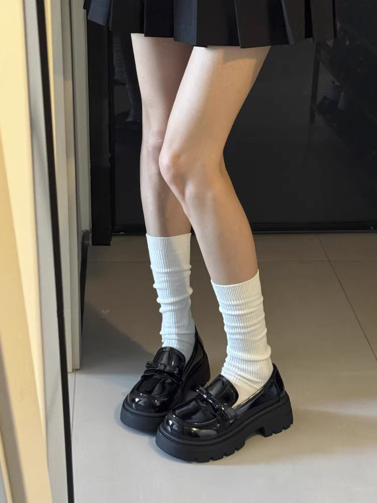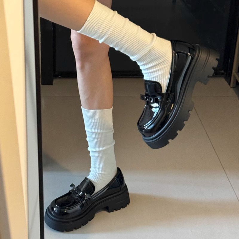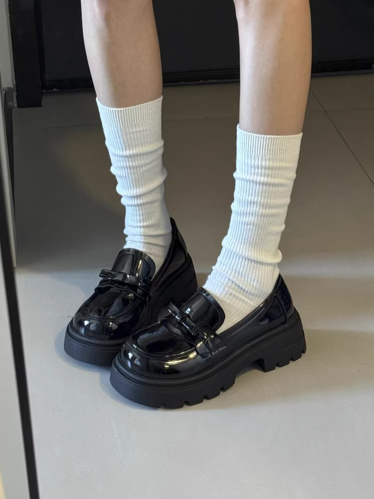 2025英伦风蝴蝶结粗跟jk乐福鞋小皮鞋女厚底一脚蹬玛丽珍单鞋女鞋