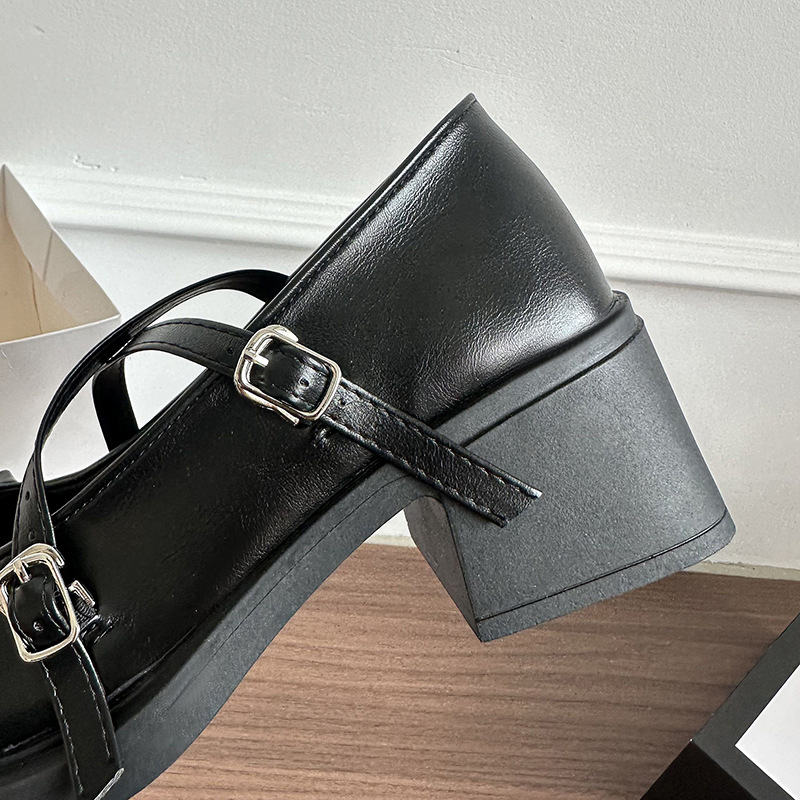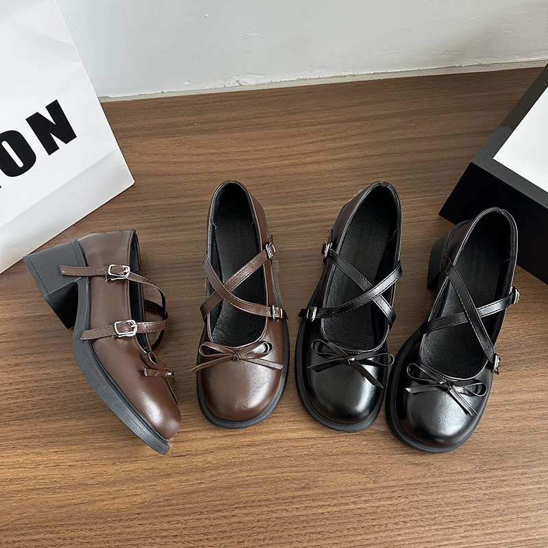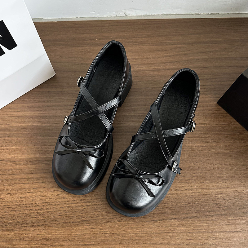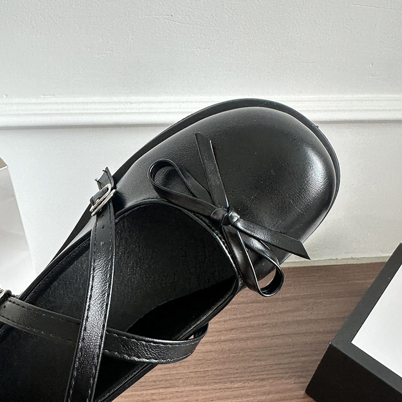 圆头厚底小皮鞋女夏2025新款配裙子增高玛丽珍蝴蝶结2025单鞋法式