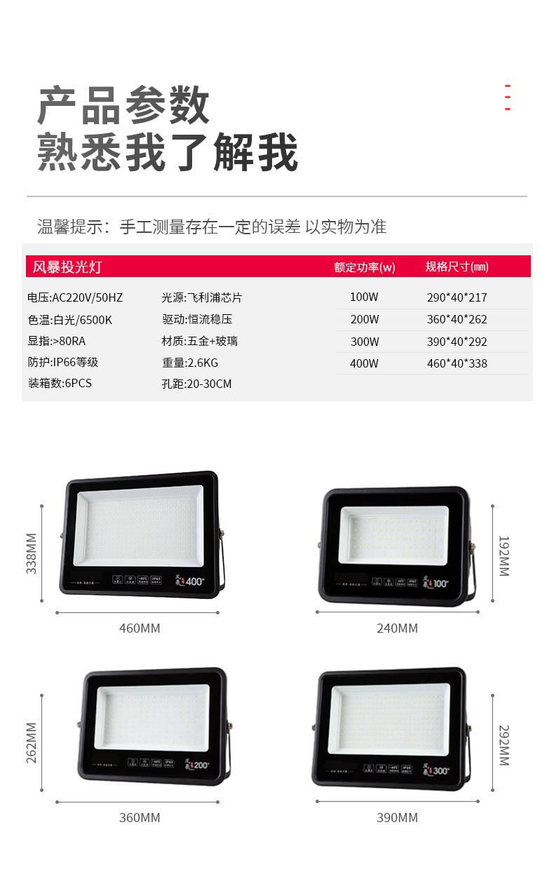 led投光灯户外庭院工程超薄防水泛光灯50-400W大功率风暴投光灯