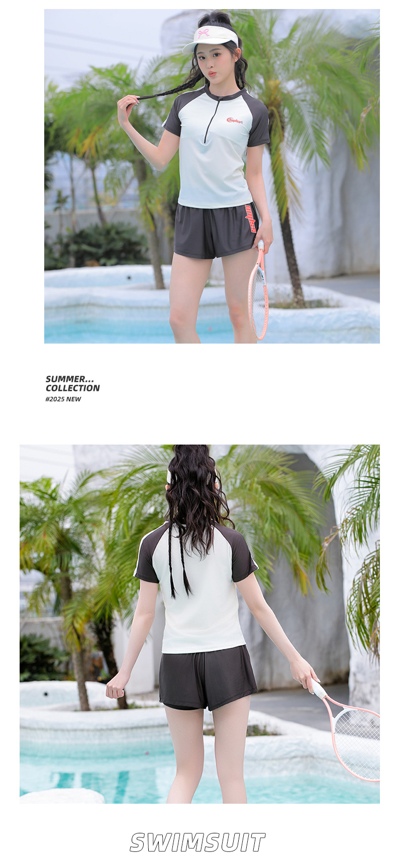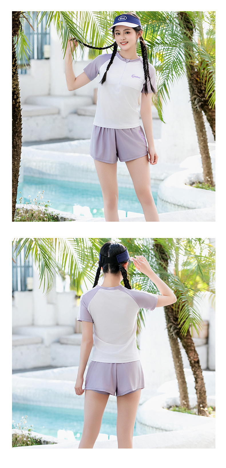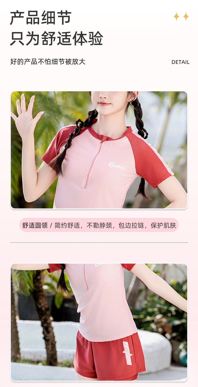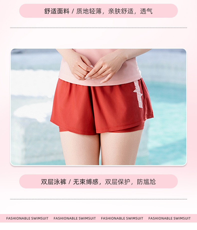 爆款现货泳衣分体2025新款夏青少年中大童双层游泳裤女款防晒泳装