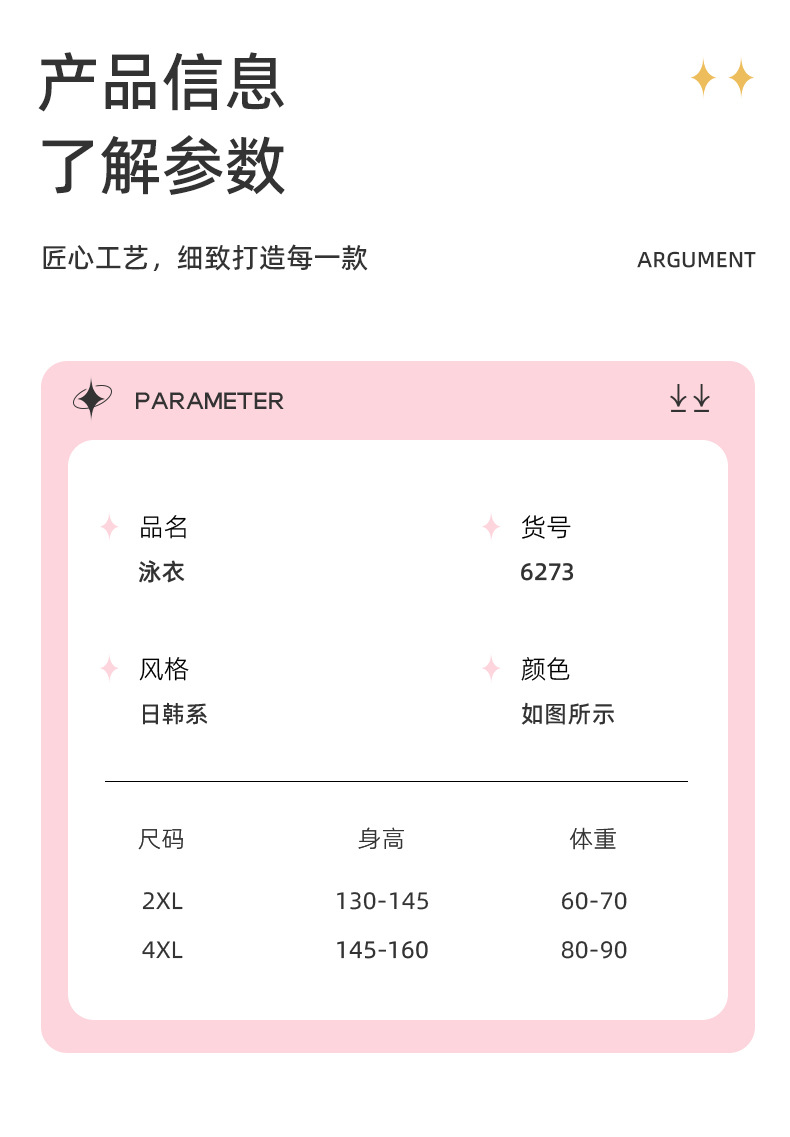 - 尺码:2XL 建议身高130-145体重60-70(带可拆卸胸垫)