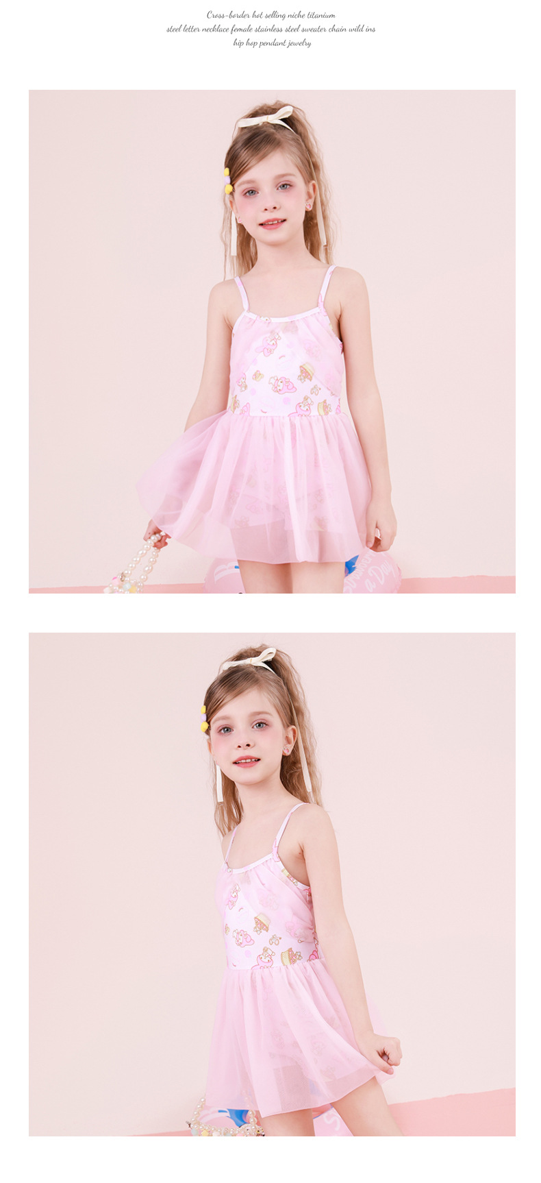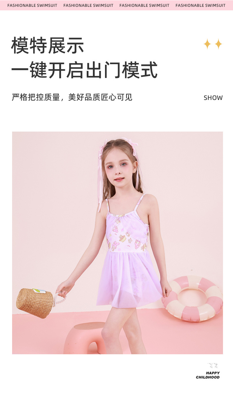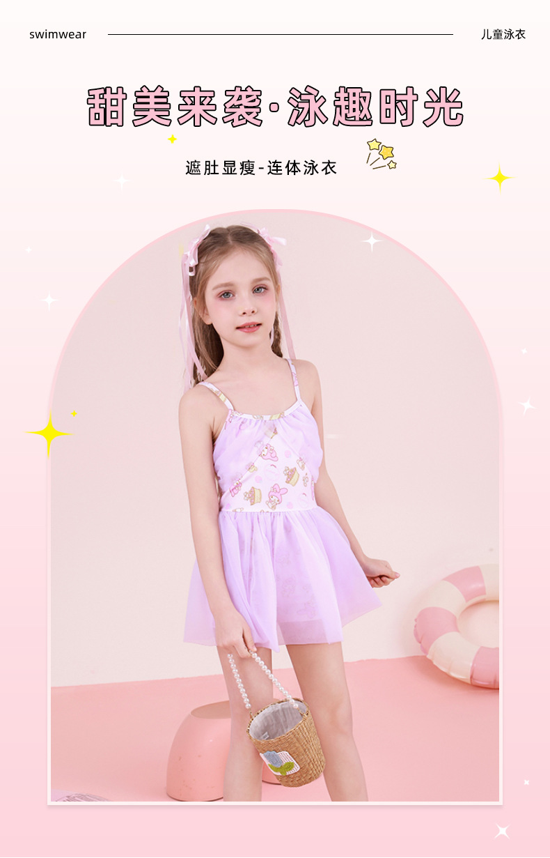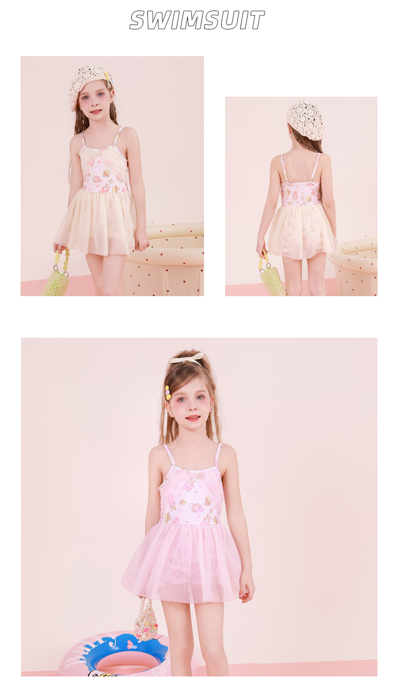 现货儿童泳衣女中小童ins碎花吊带四面弹连体公主裙式游泳衣批发