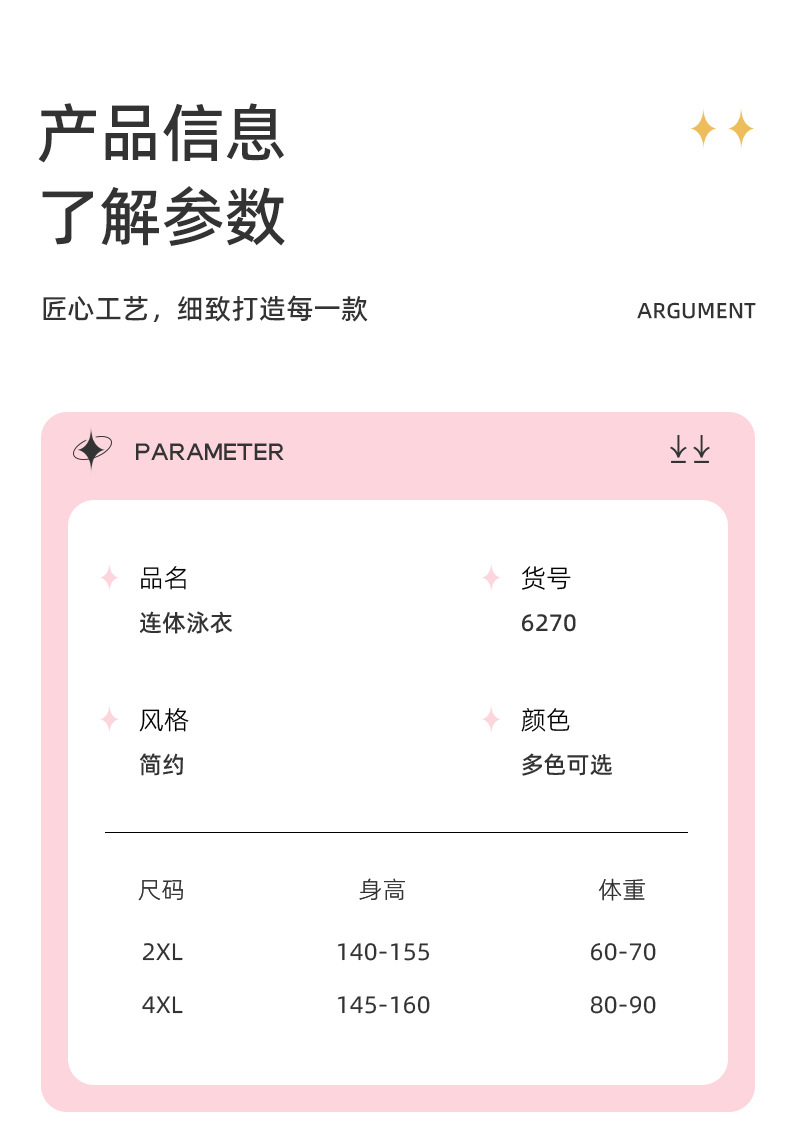 - 尺码:4XL 建议身高145-160 体重80-90(带可拆卸胸垫)