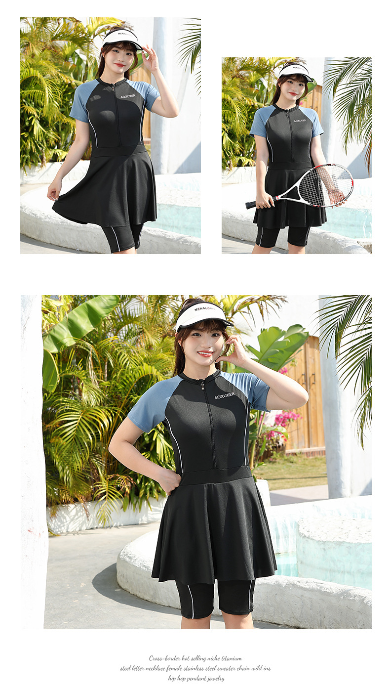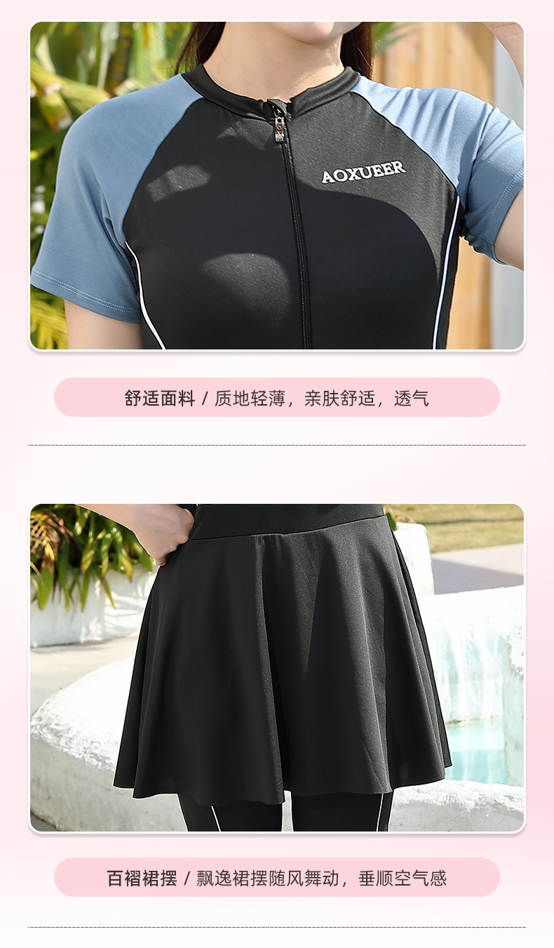 女款泳衣高级感遮肚显瘦连体泳装加肥大码短袖温泉泳衣批发现货
