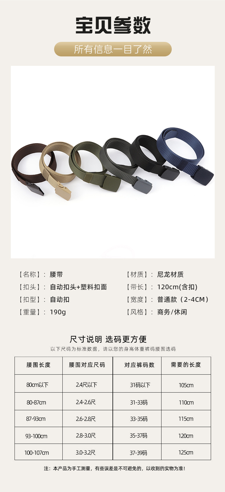 仿尼龙轻便装饰腰带自动扣柔韧男女通用百搭皮带时尚街头风装饰品