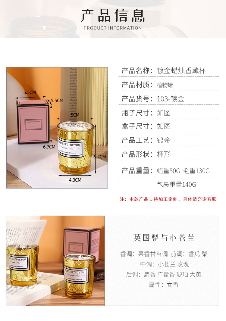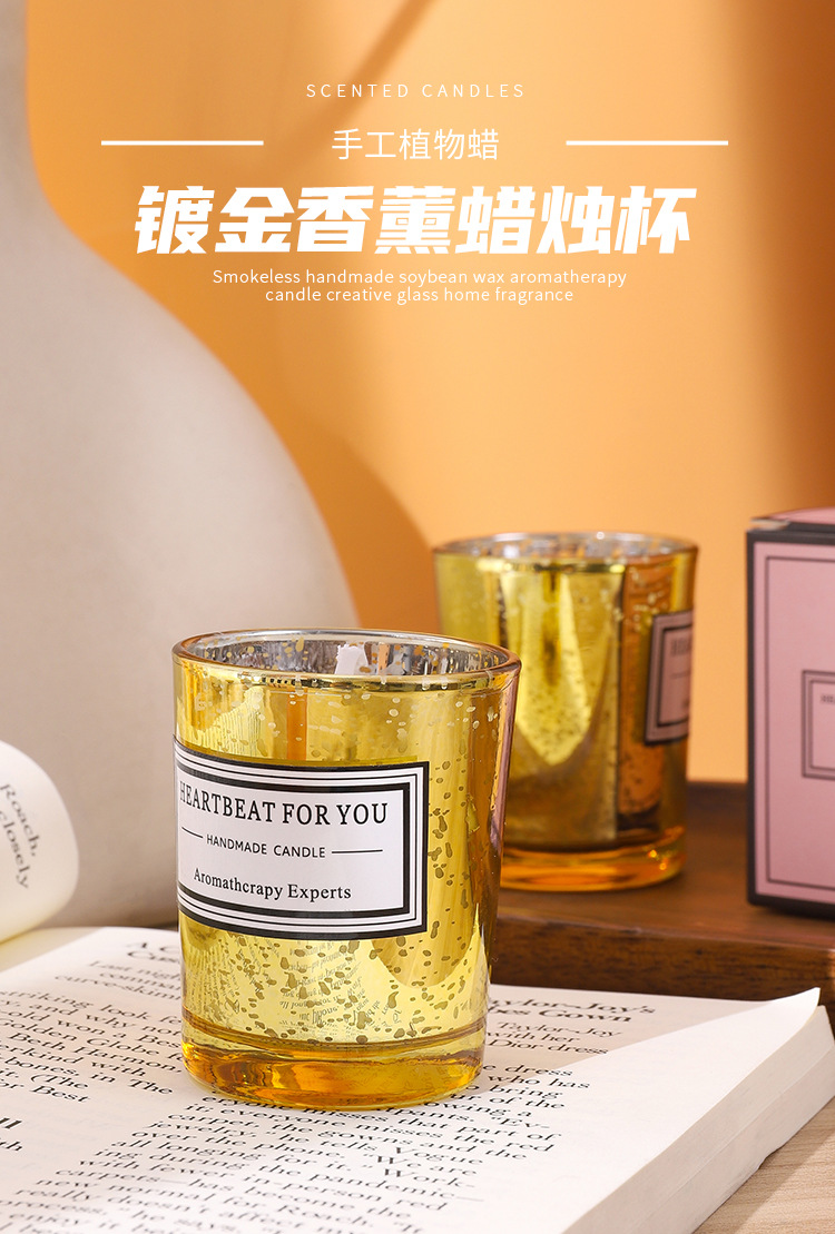 香薰蜡烛卧室香氛精油手工植物蜡镀金蜡烛杯生日礼物伴手礼手作