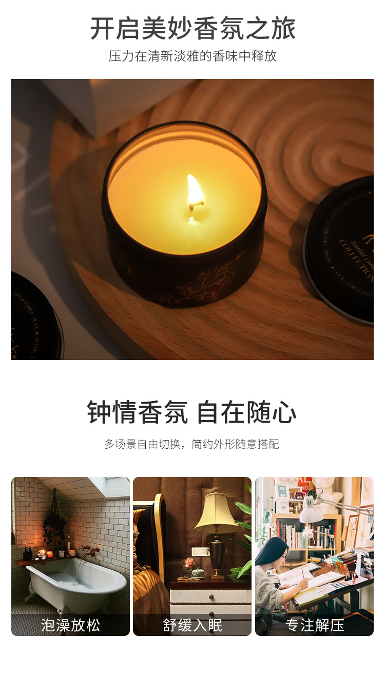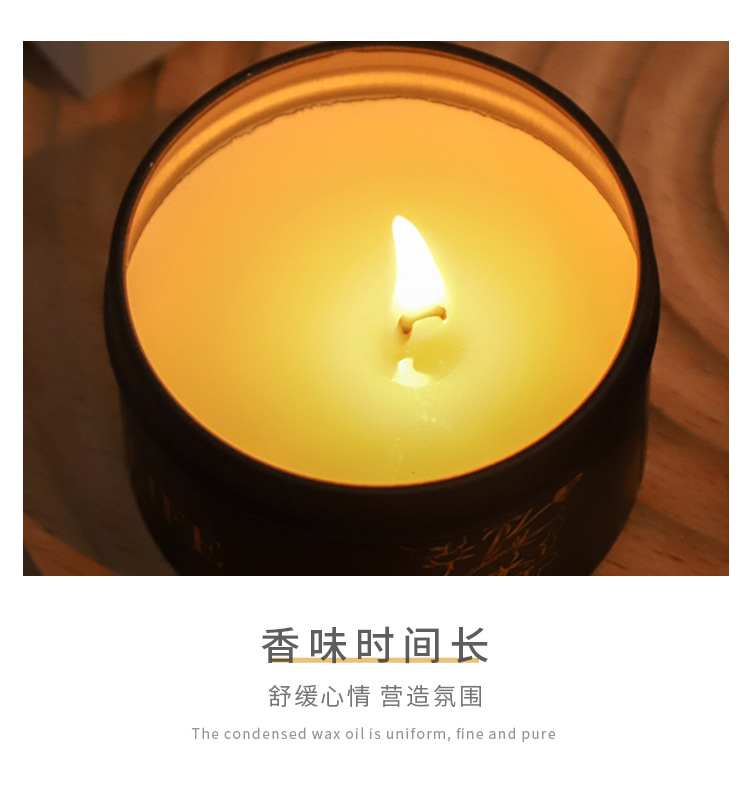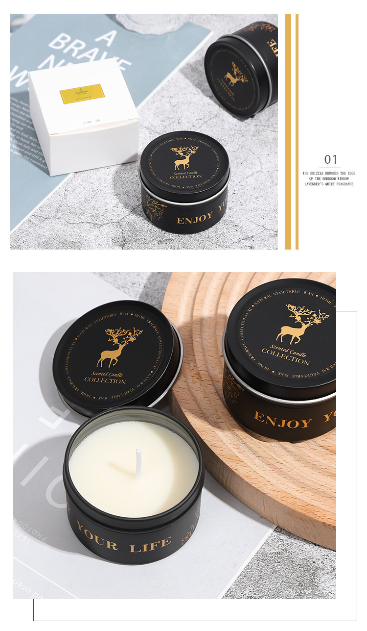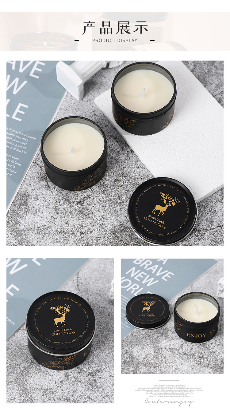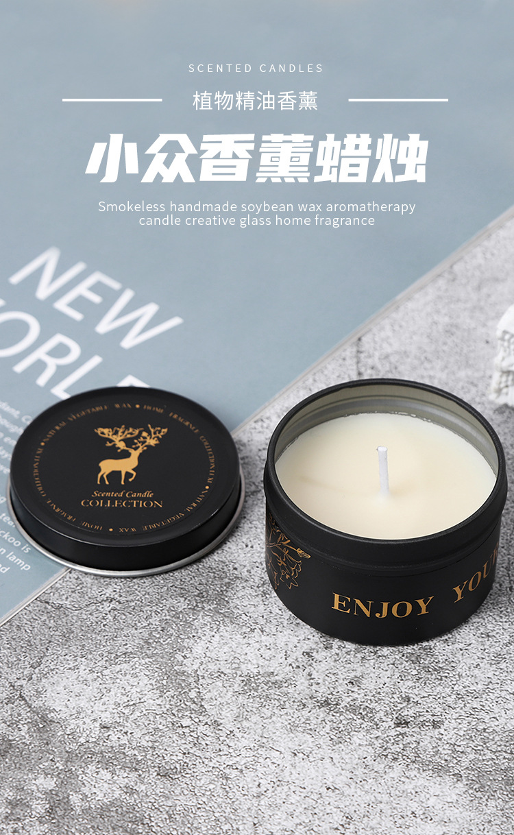 跨境黑色马口罐香薰蜡烛烫金烫银植物蜡伴手礼卧室扩香香氛精家居