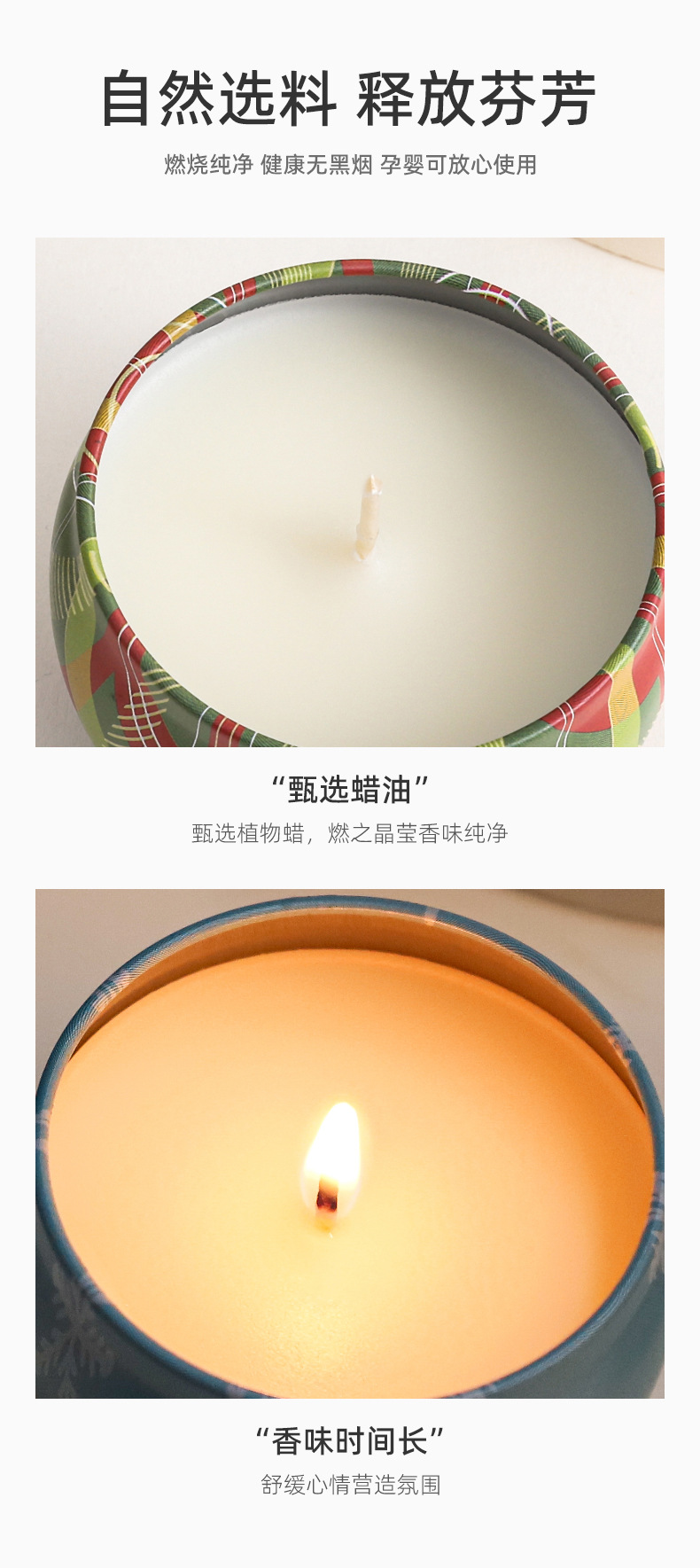 圣诞节日香薰蜡烛室内无烟香氛蜡烛马口铁罐香氛摆件香薰蜡烛礼盒