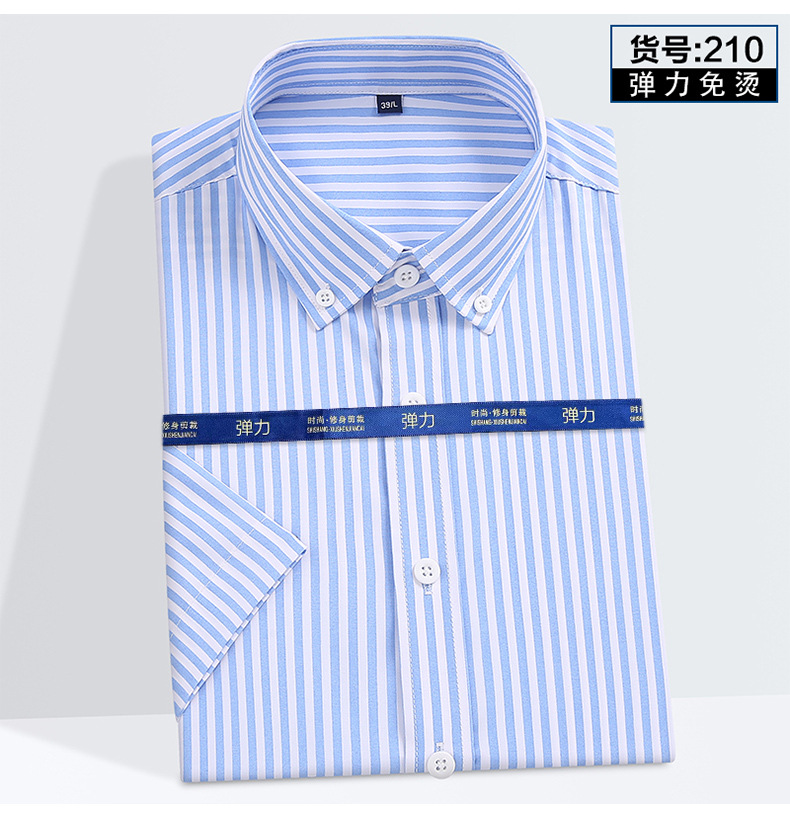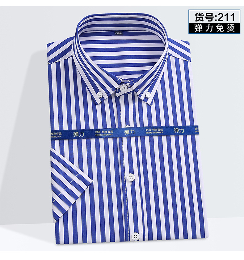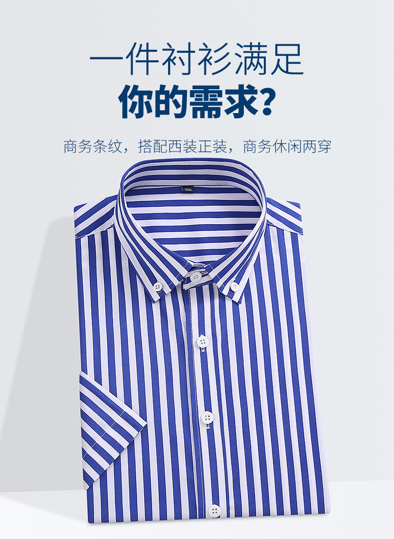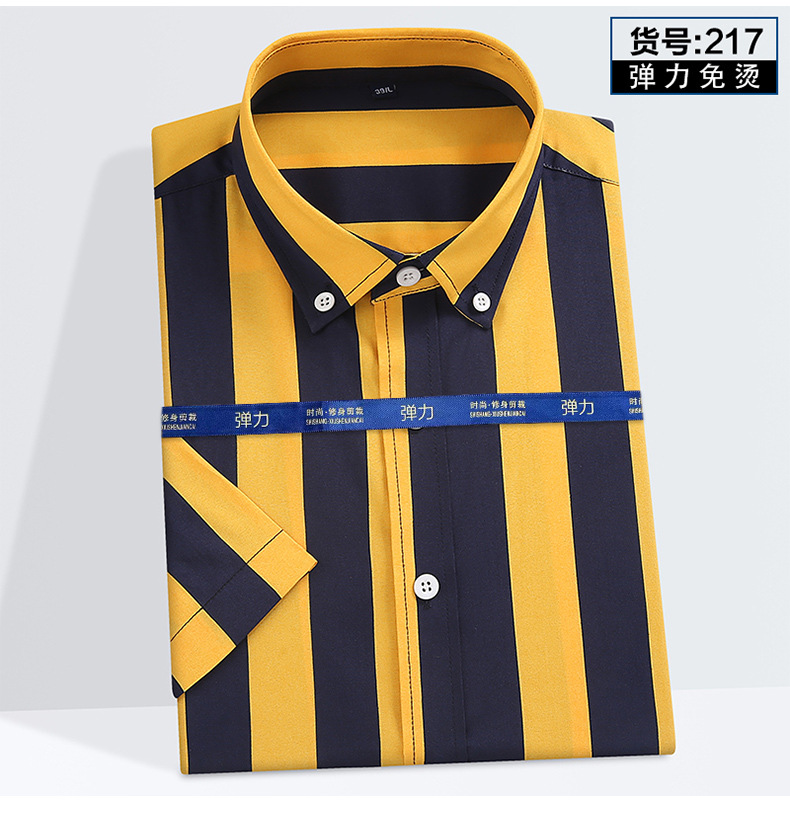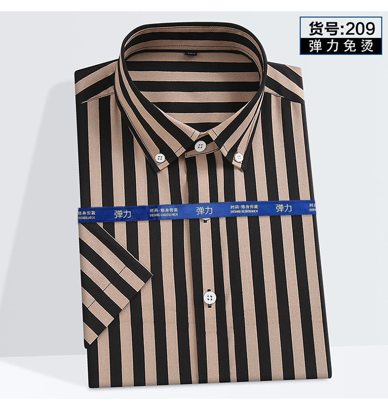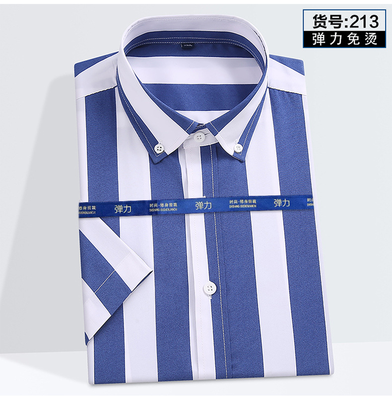 韩版男士条纹短袖青少年休闲弹力免烫衬衫衬衣时尚外穿男装衬衫