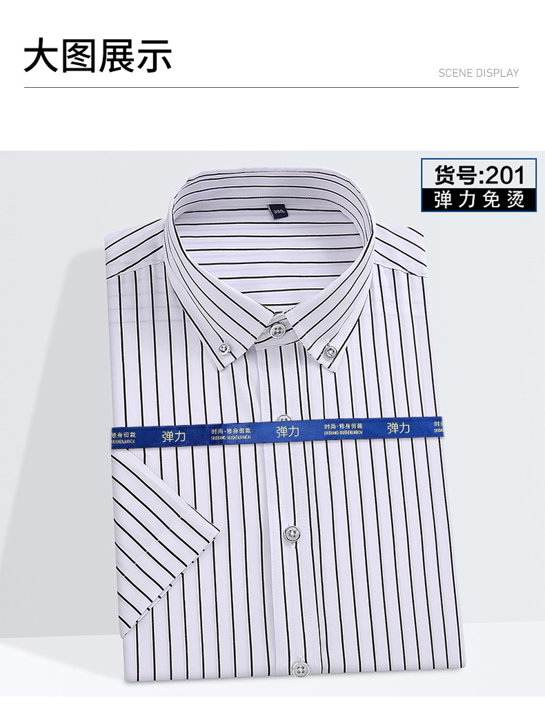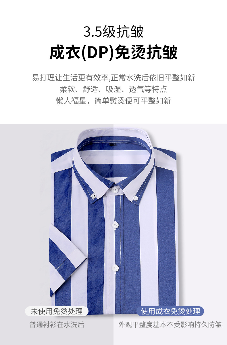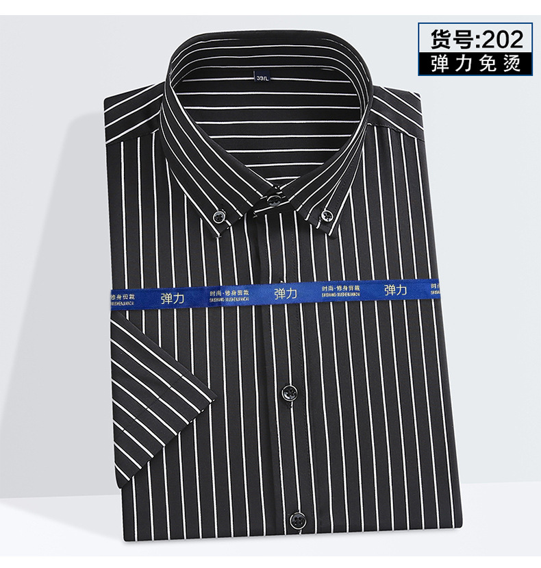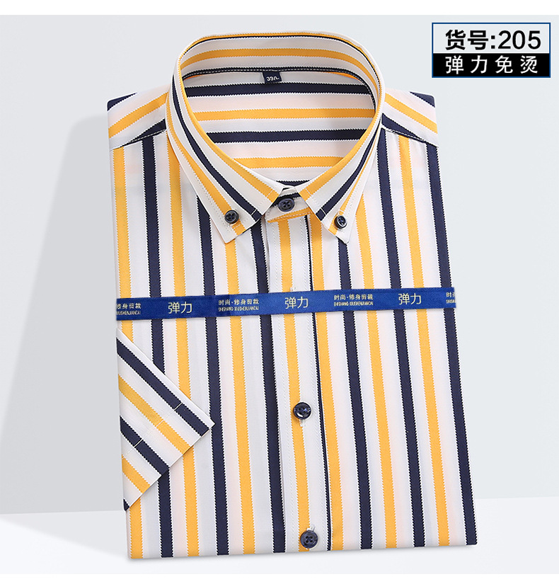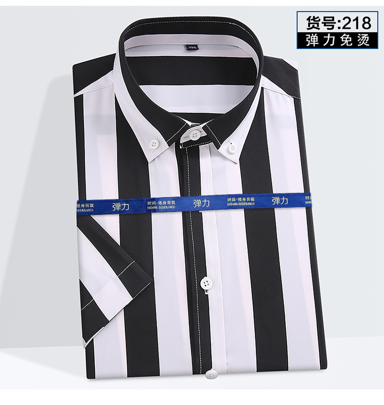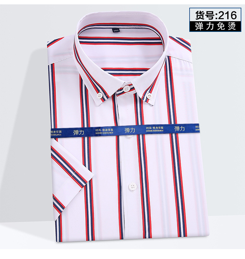 韩版男士条纹短袖青少年休闲弹力免烫衬衫衬衣时尚外穿男装衬衫