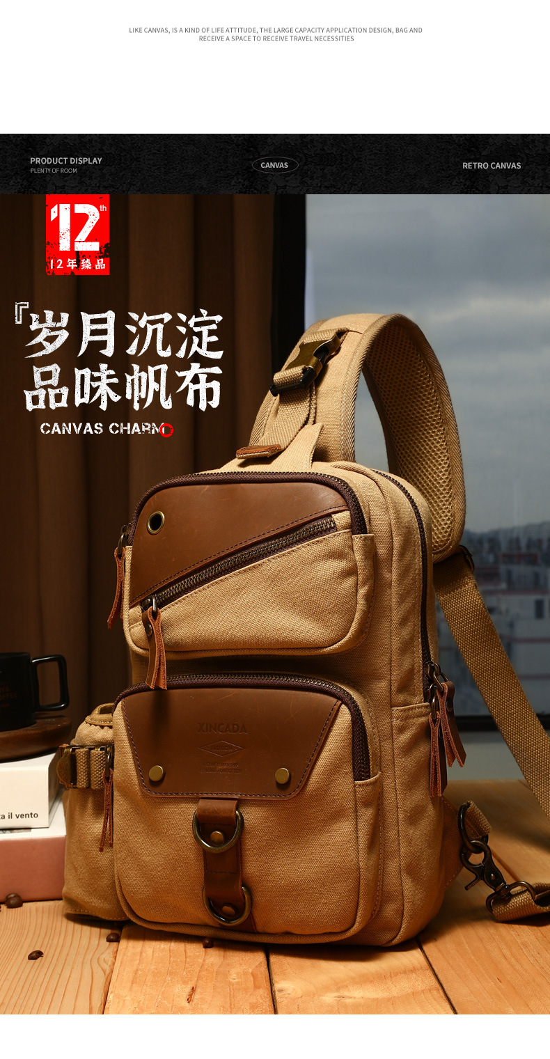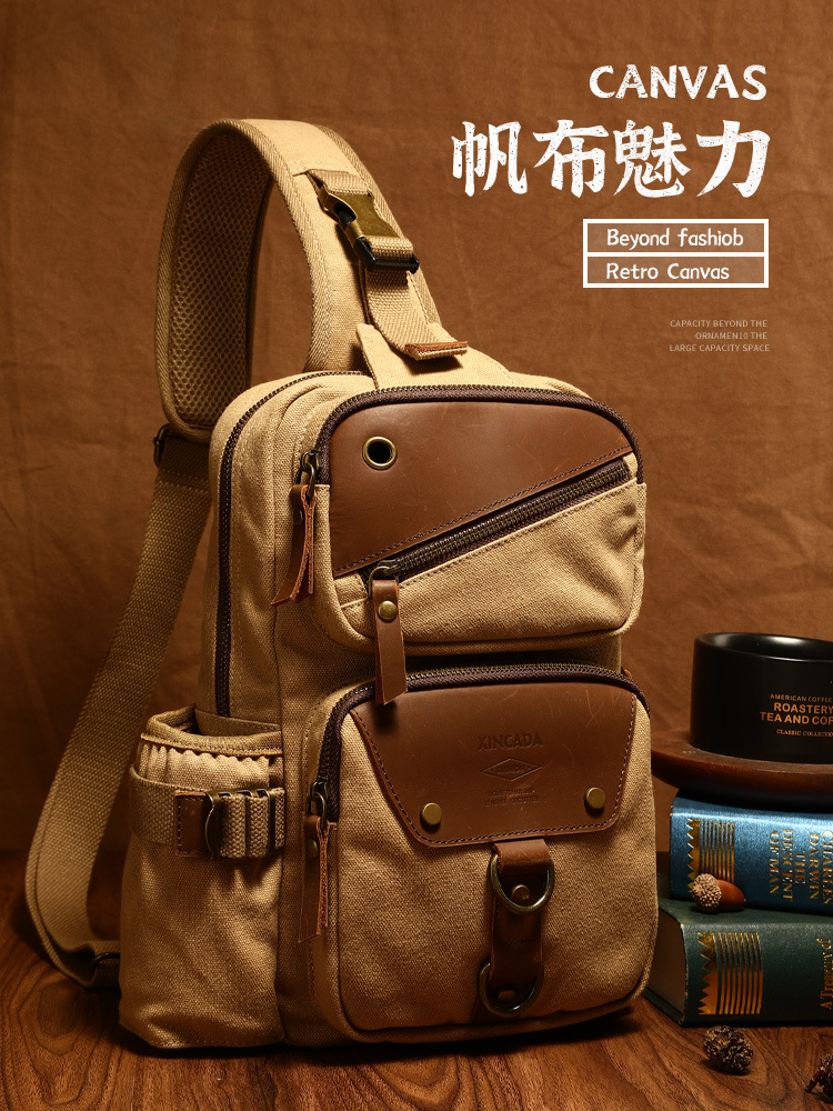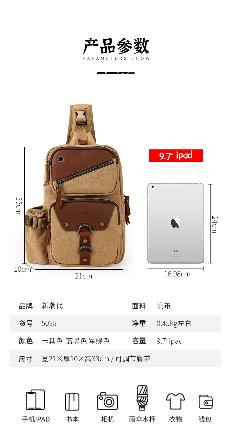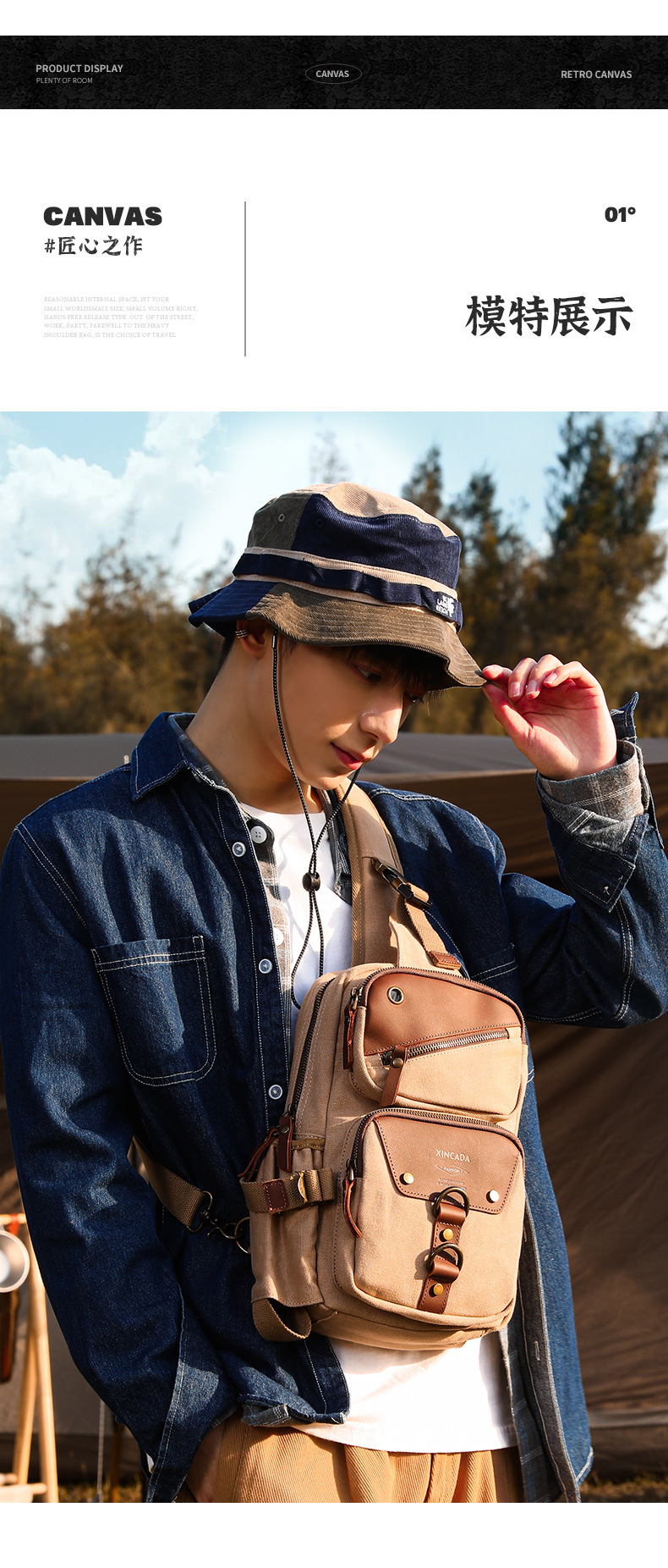 厂家批发帆布胸包斜挎包 男式小胸包户外手提腰包收钱包 跨境代发