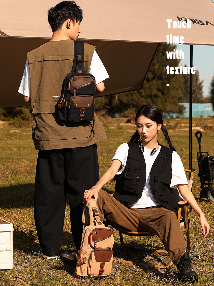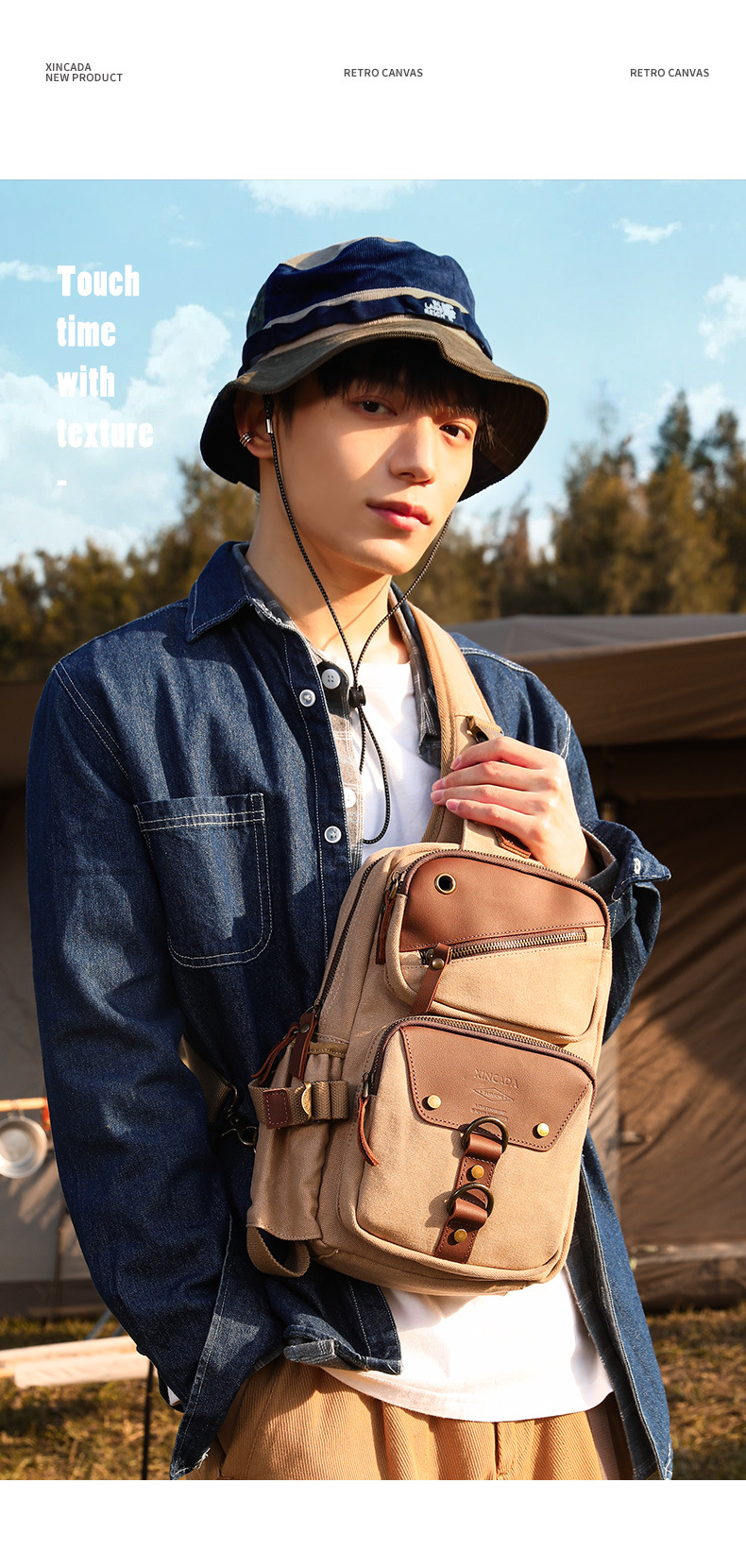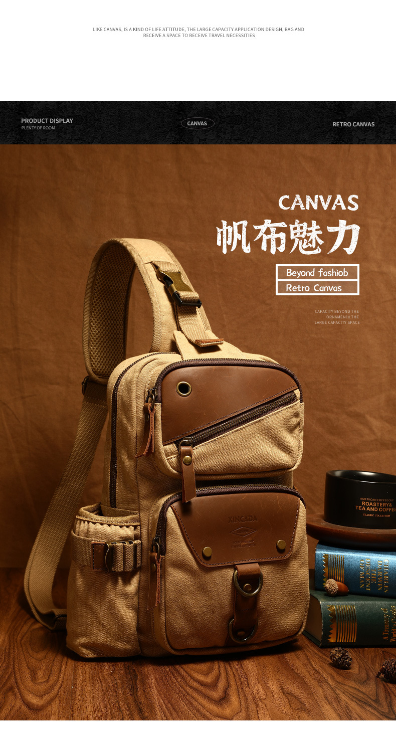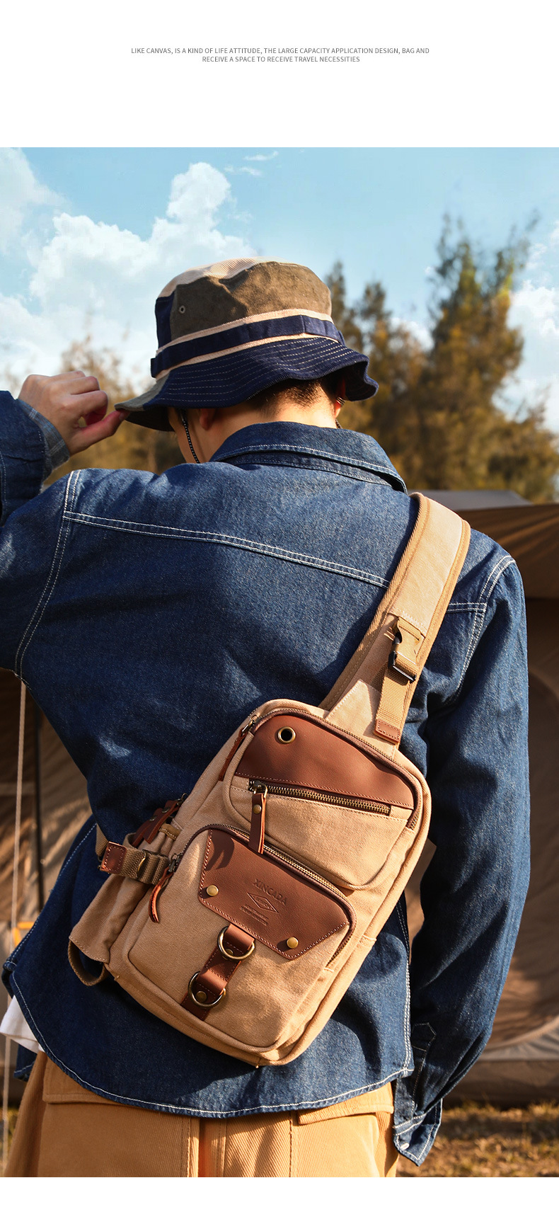 厂家批发帆布胸包斜挎包 男式小胸包户外手提腰包收钱包 跨境代发