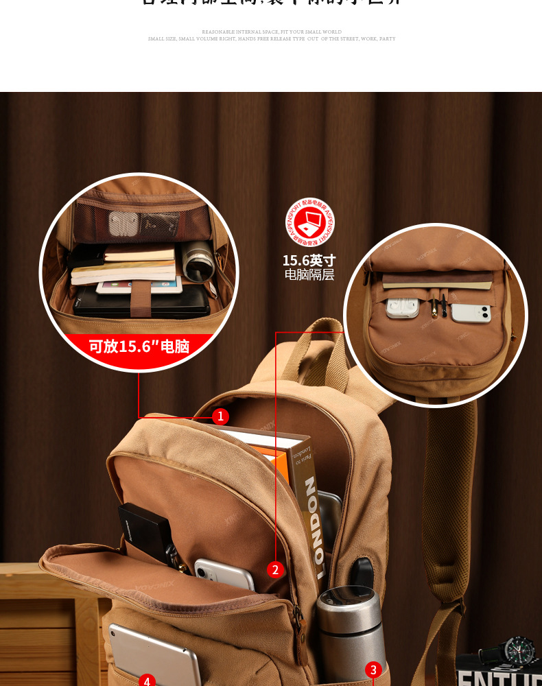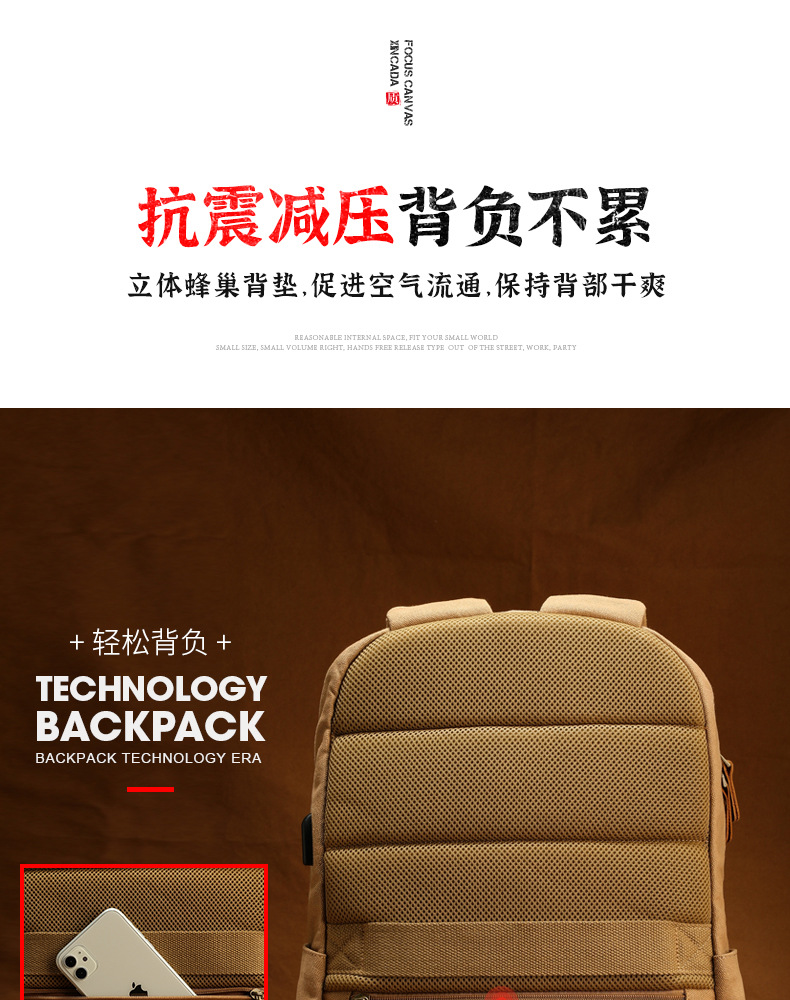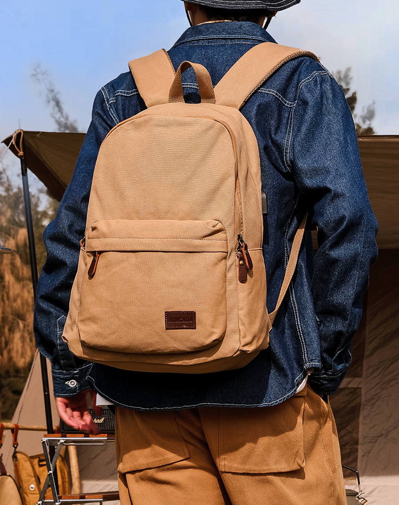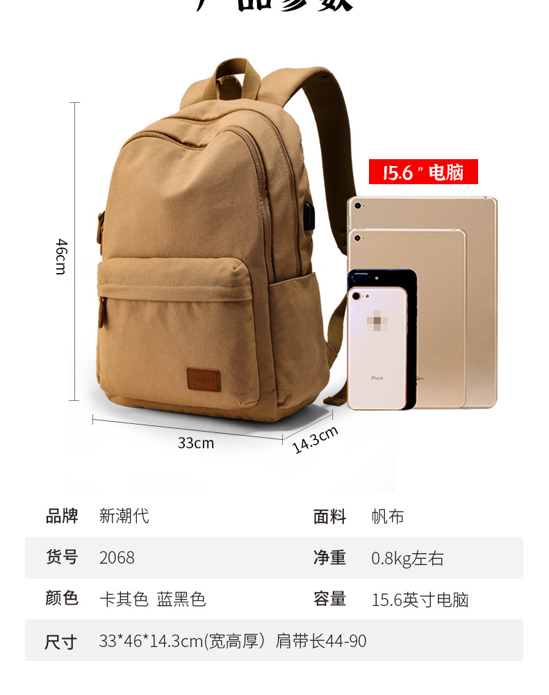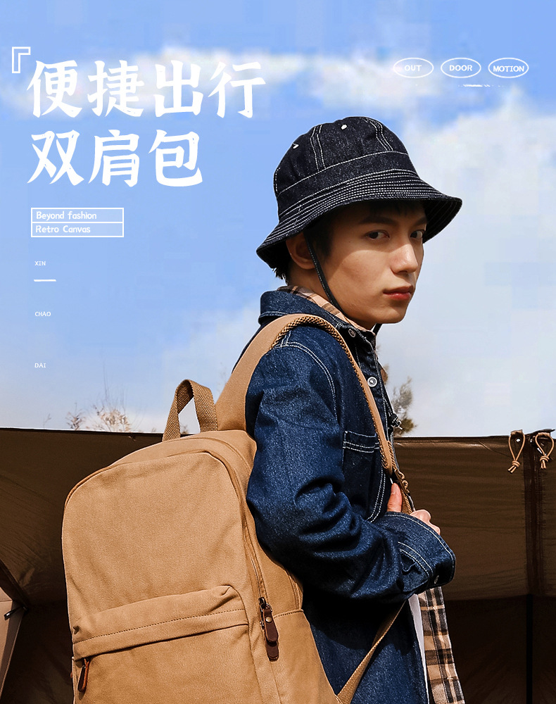 运动男士背包休闲高中学生书包帆布大学生旅行电脑双肩包复古校园