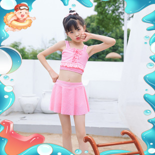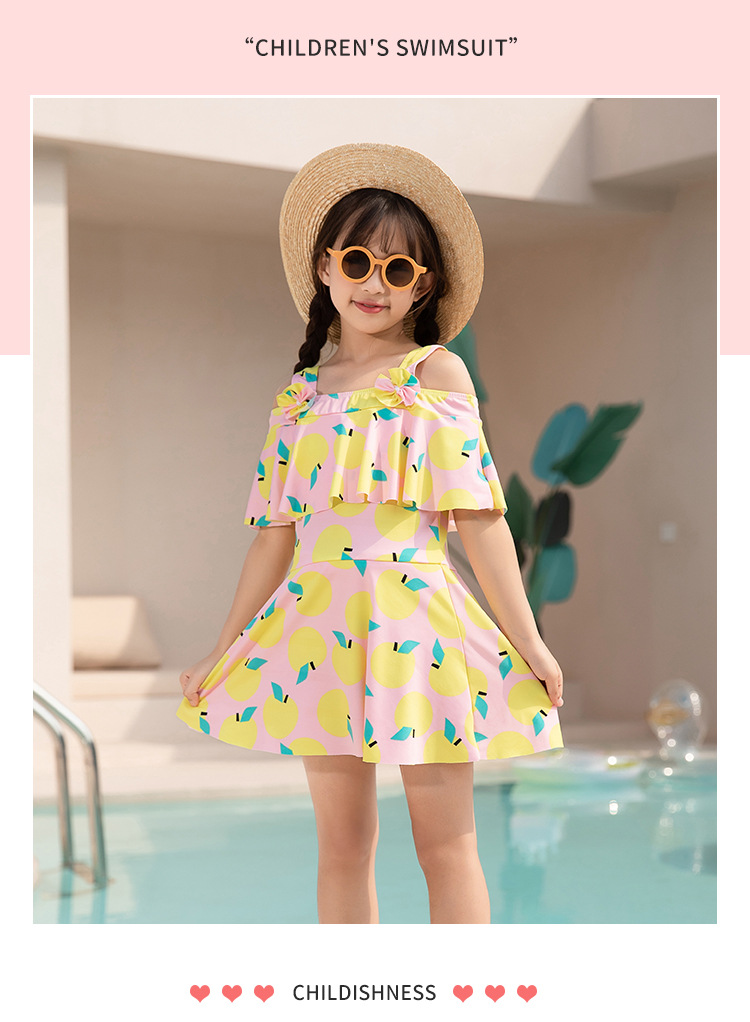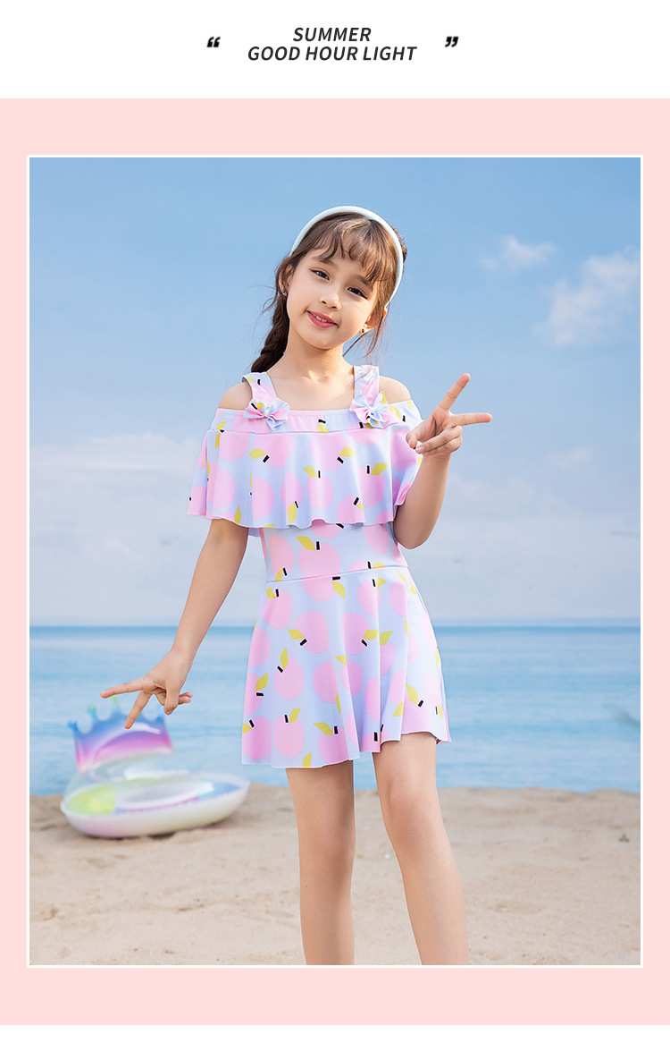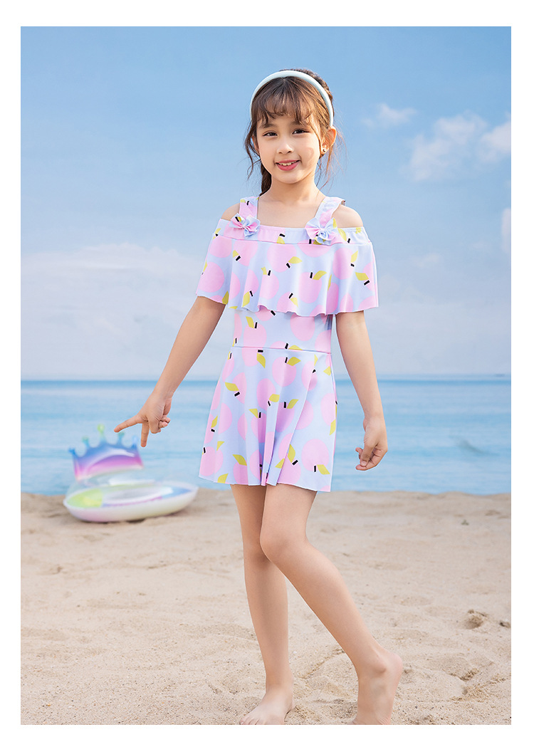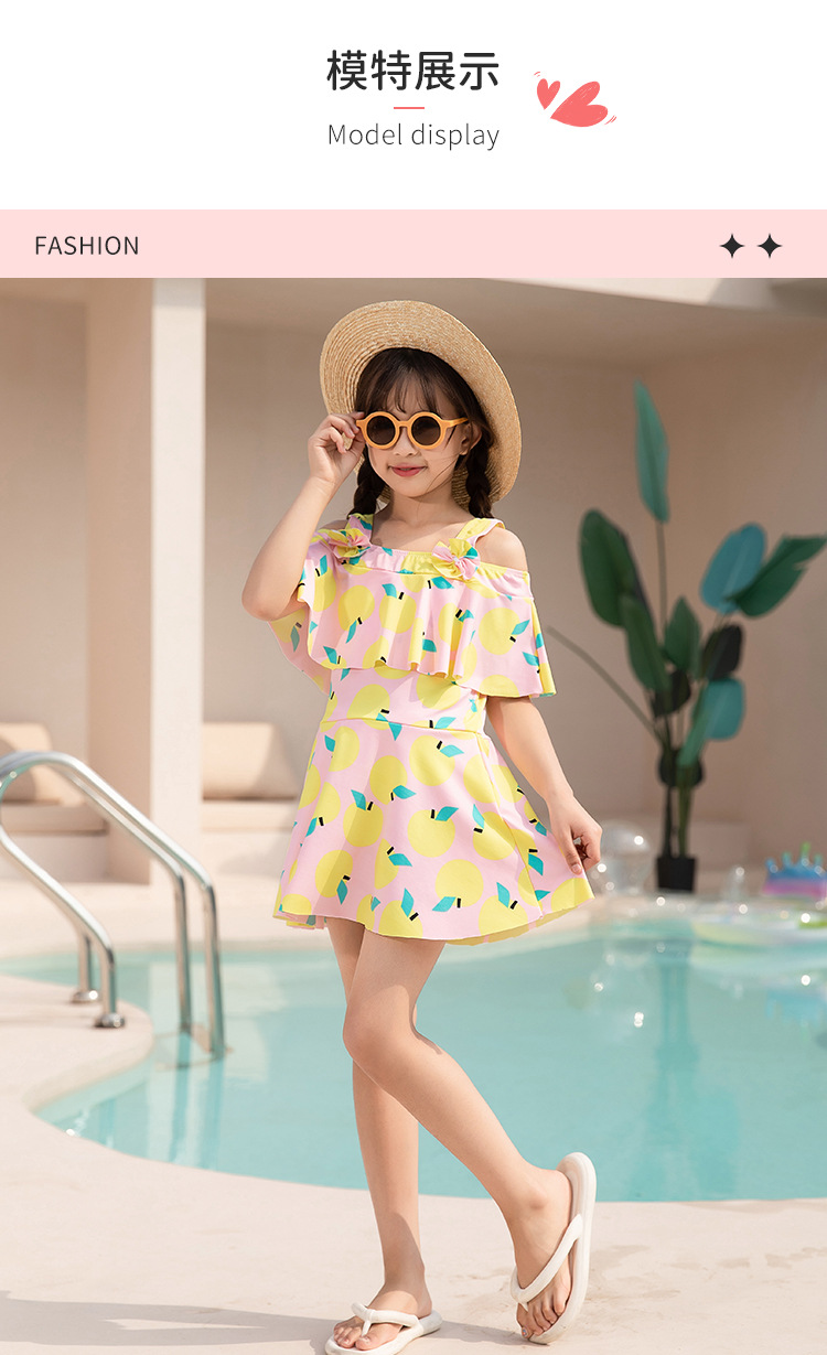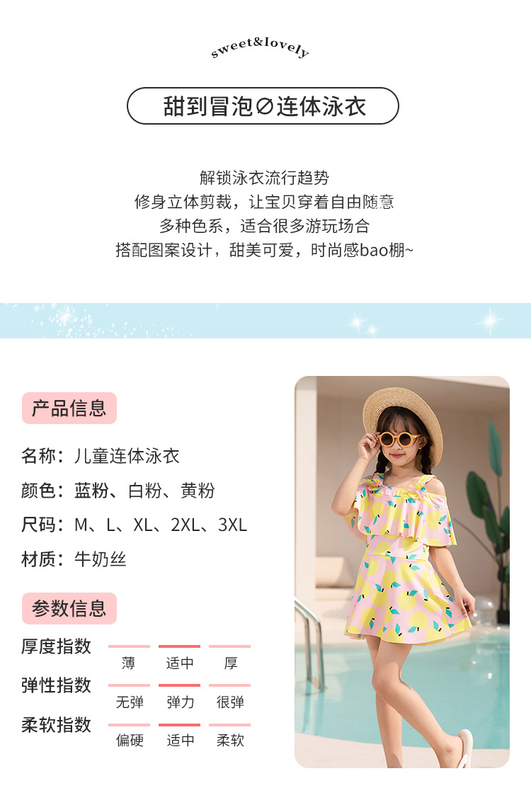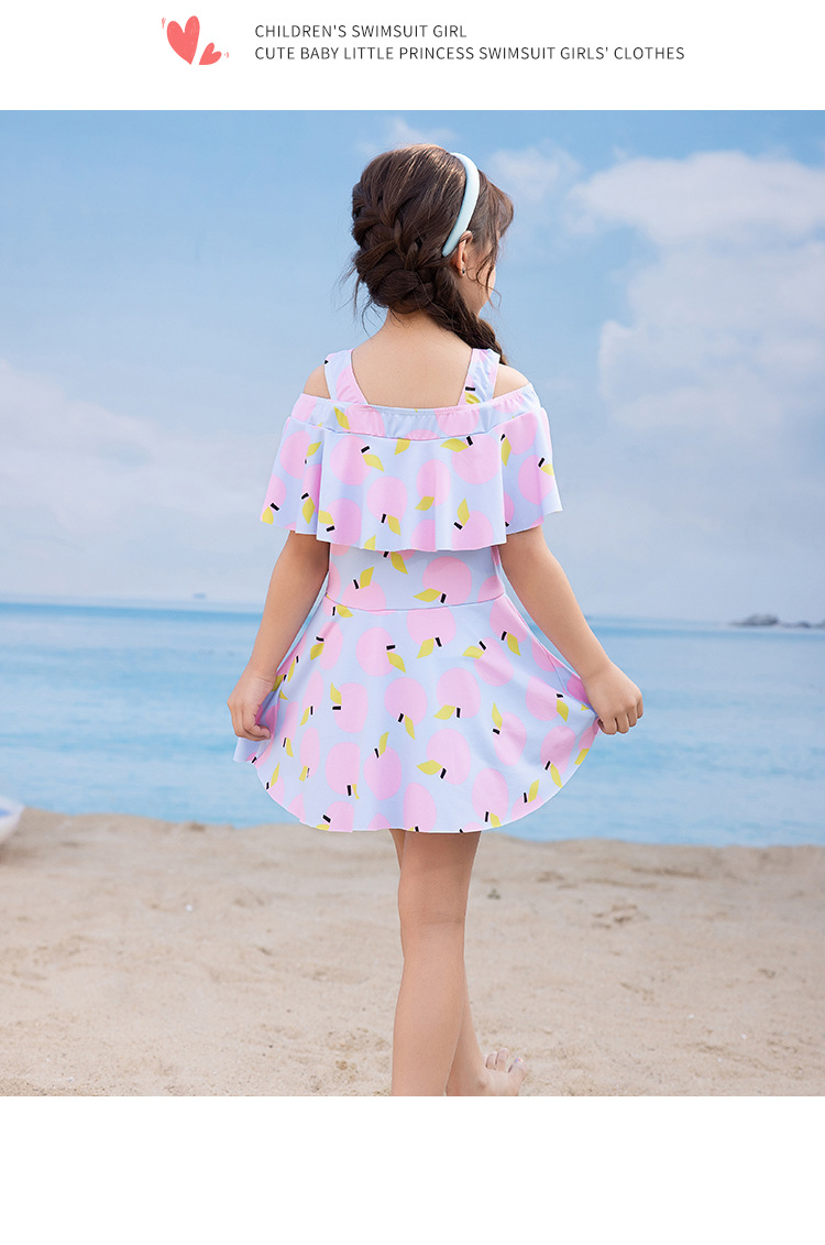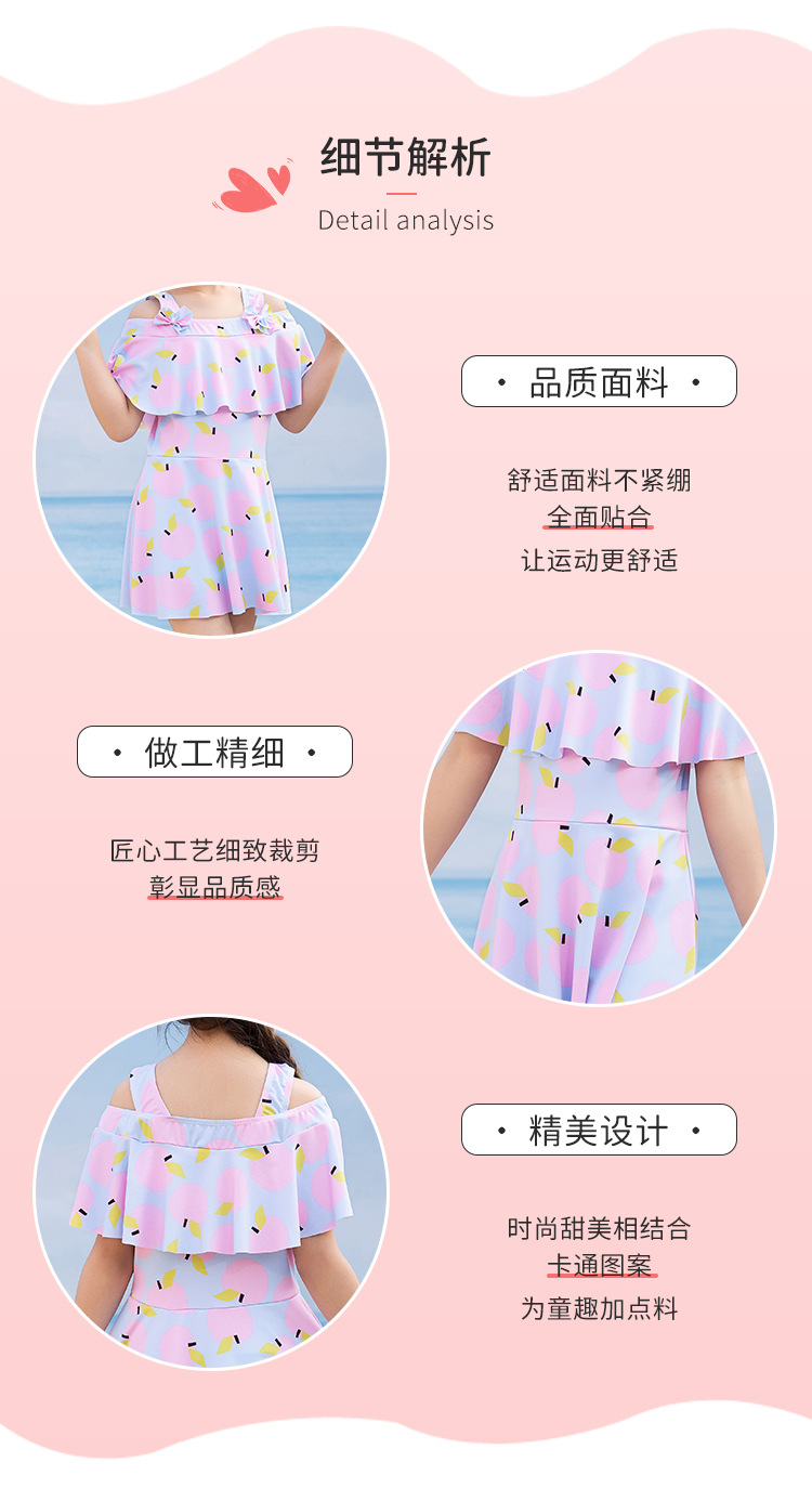 女童泳衣 连体夏5-10岁中大童裙式泳衣 洋气荷叶边防走光设计泳装