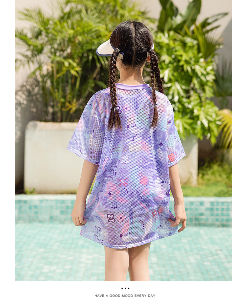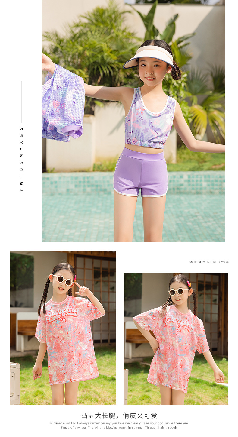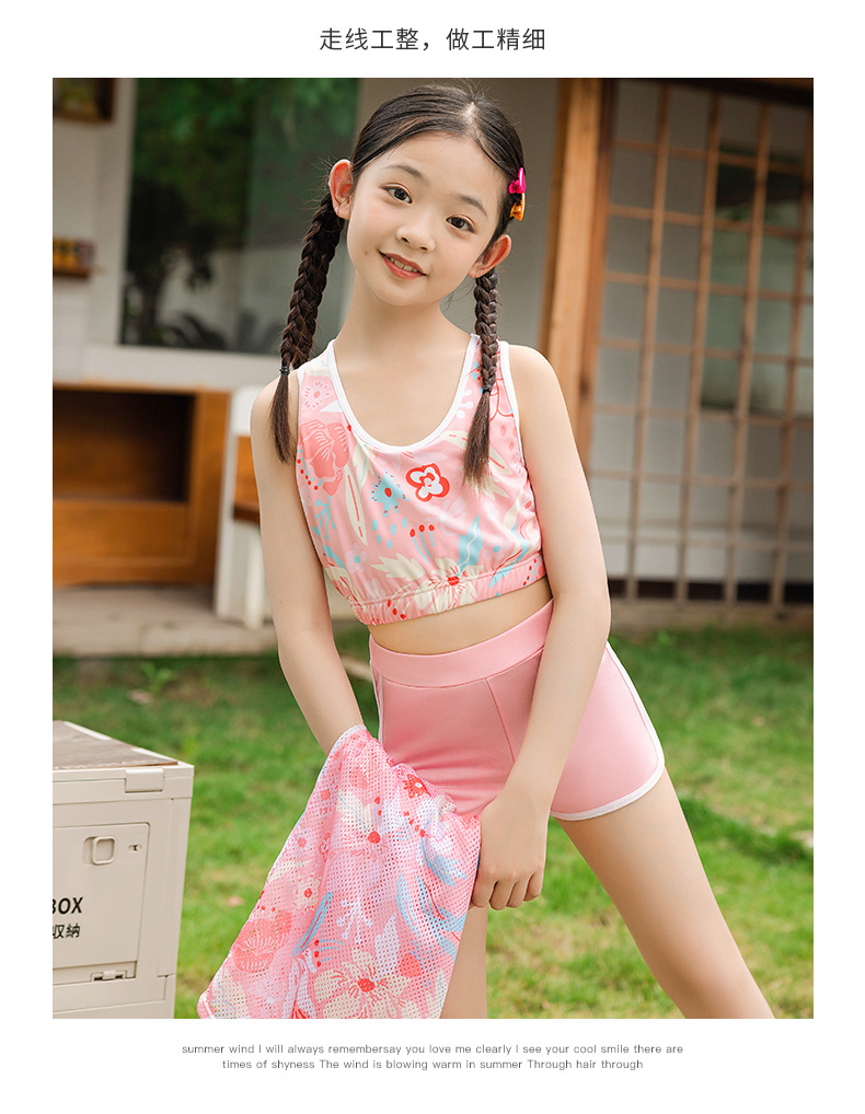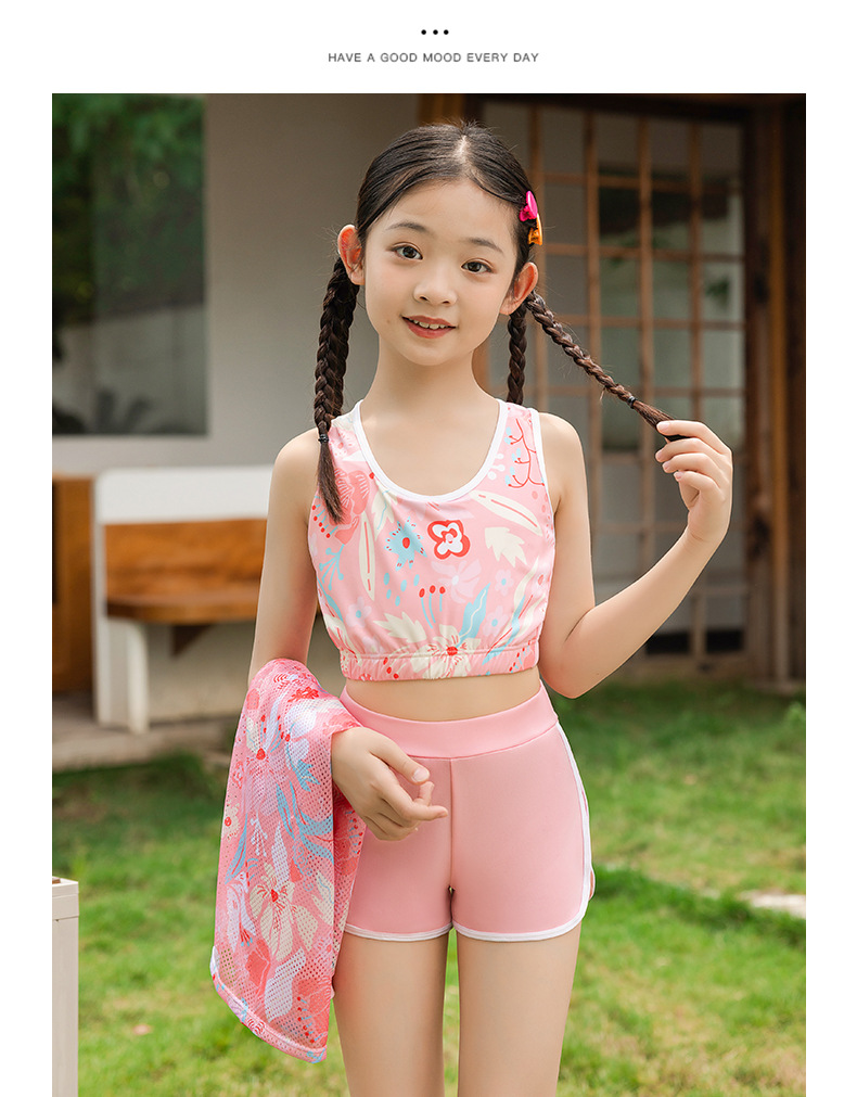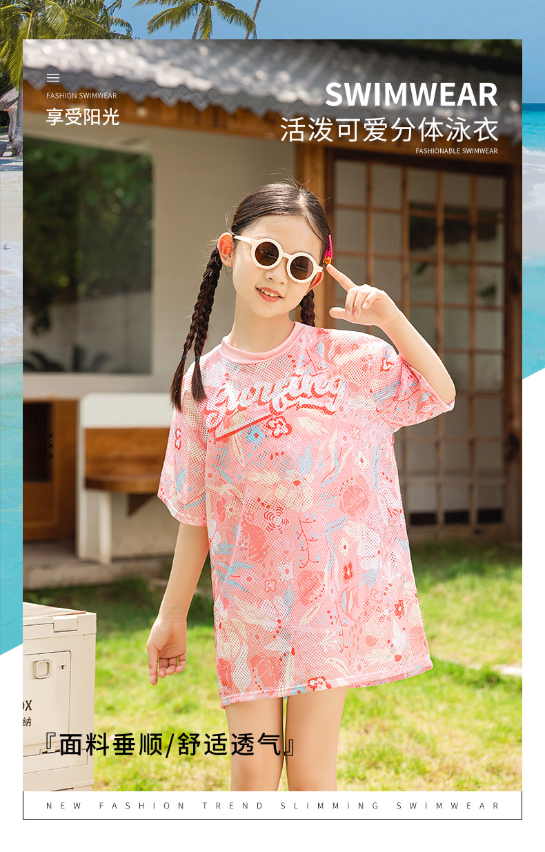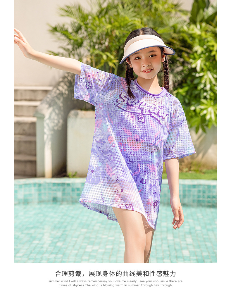 儿童泳衣 女童中大童初中生保守泳衣2025夏季女孩游泳衣三件套装