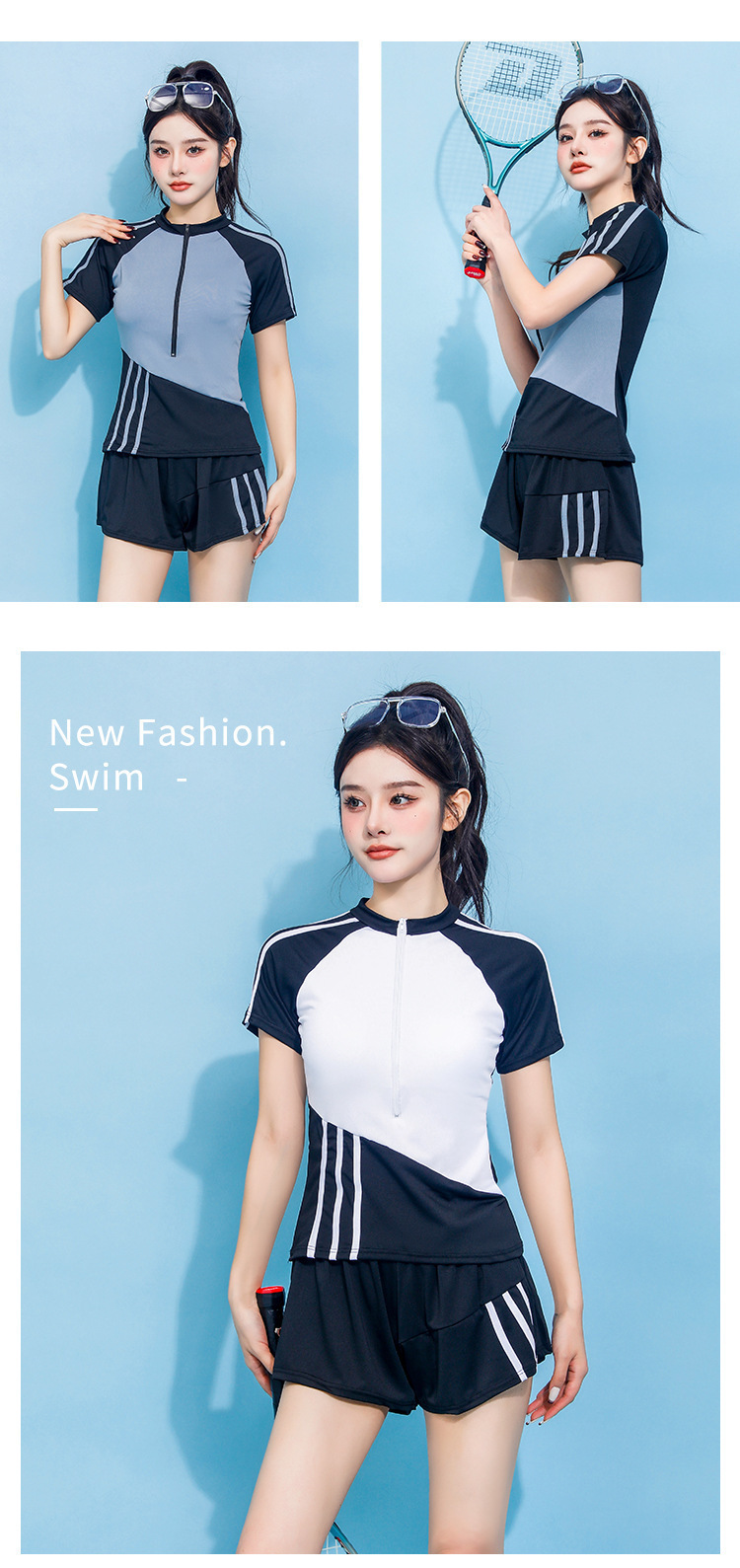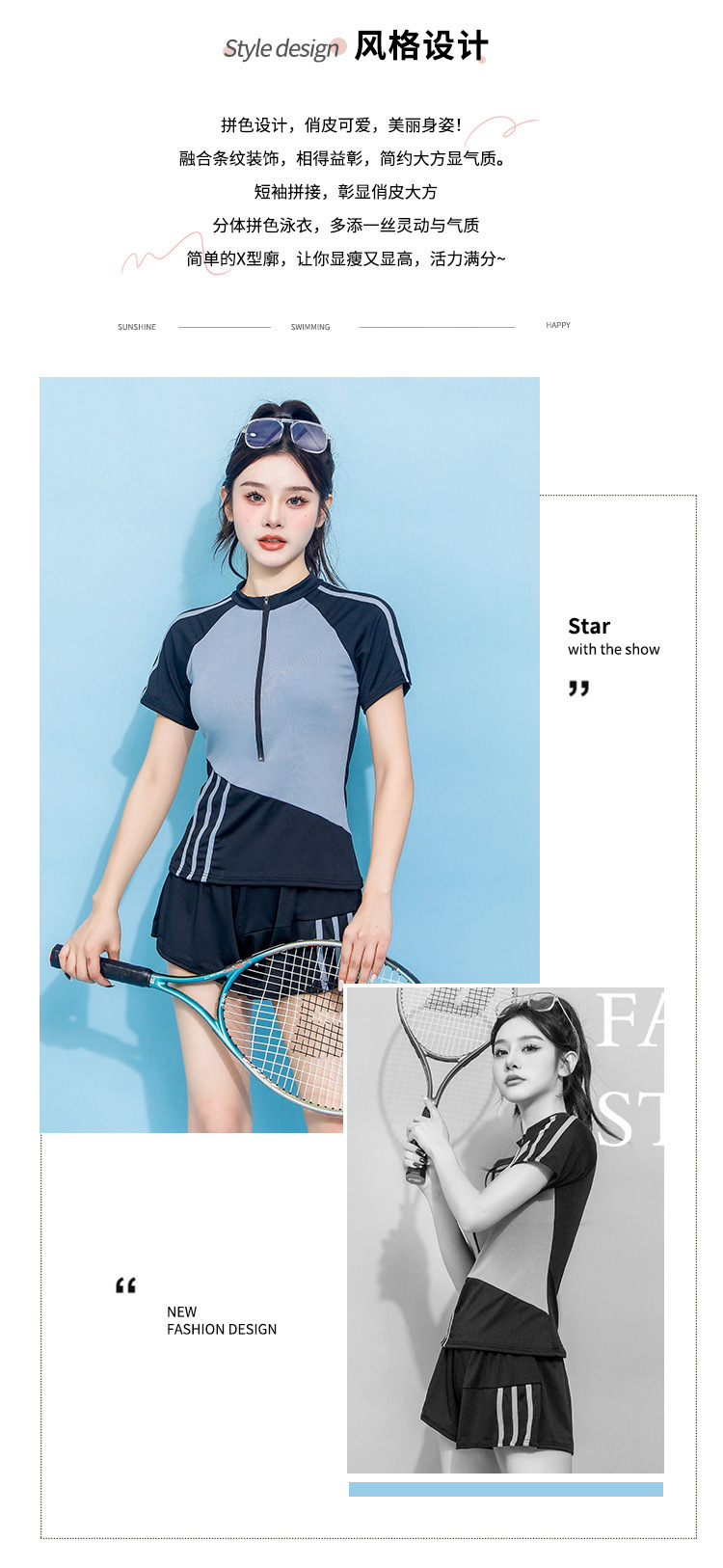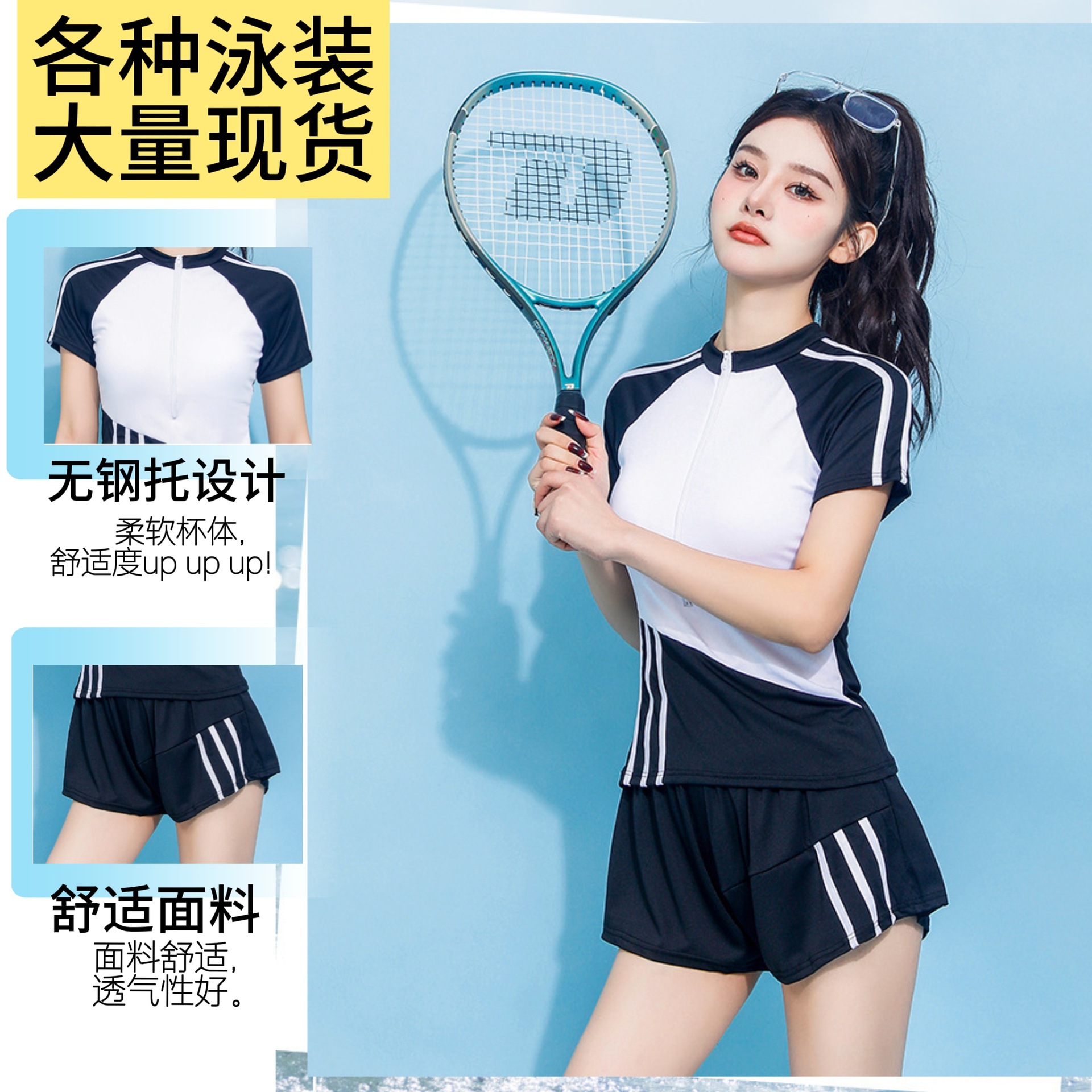 25年新款运动套装泳衣夏季健身速干透气短裤防走光网球套装游泳衣