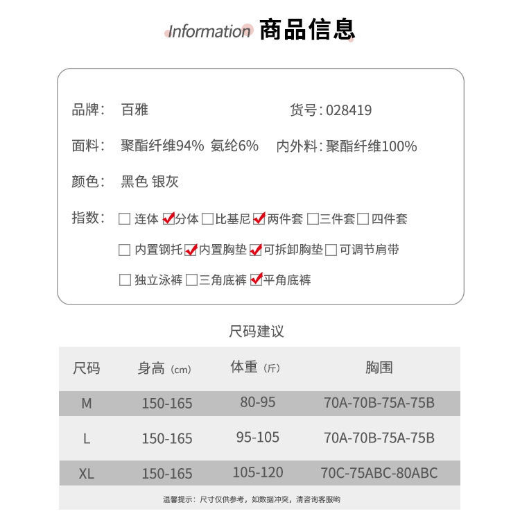 - 是否带钢拖:带胸垫无钢托