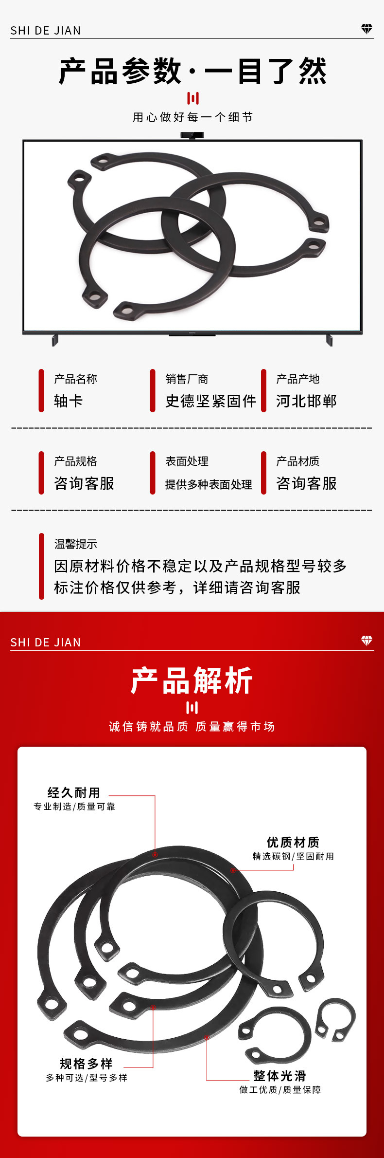 - 产品规格:65mn轴卡38