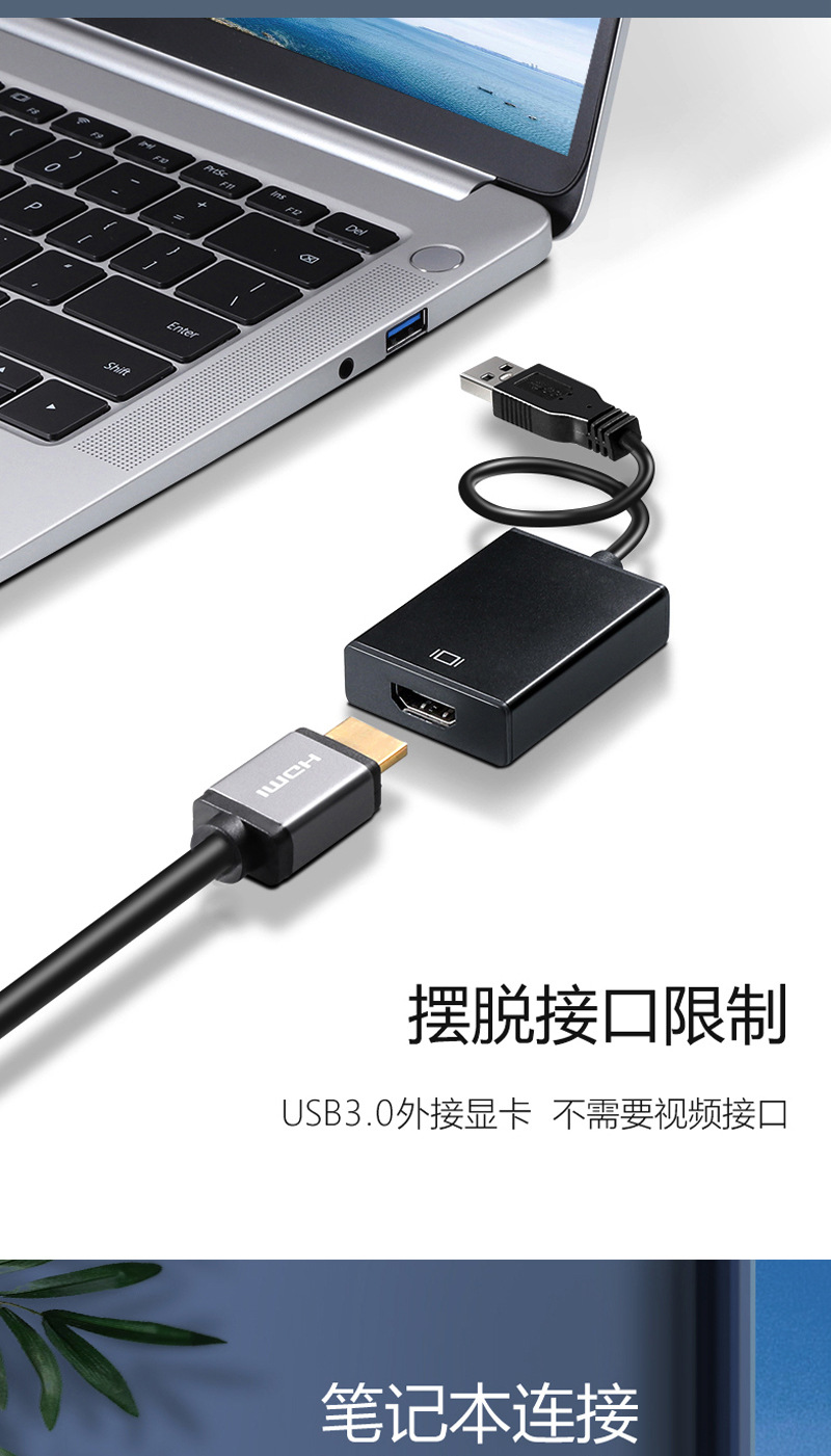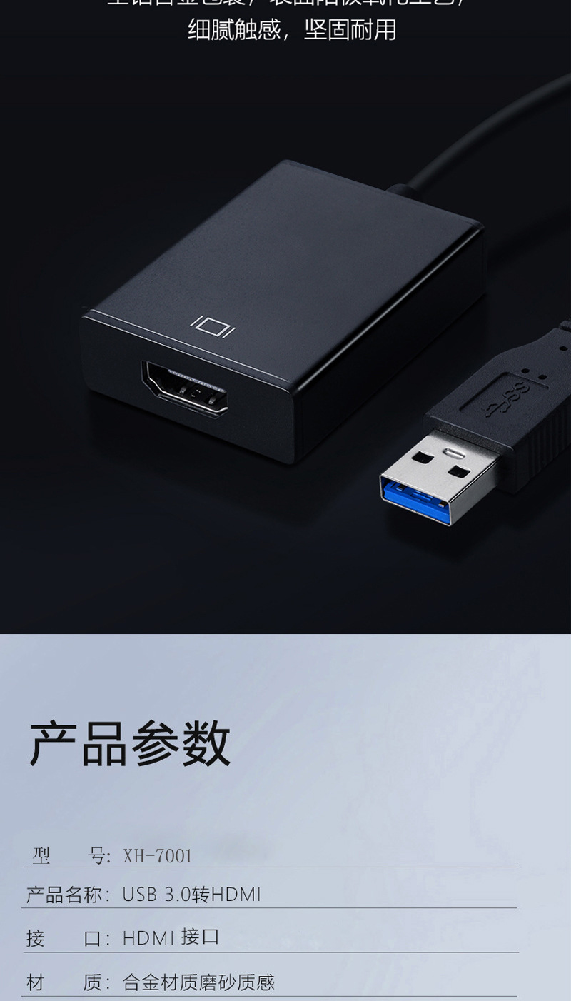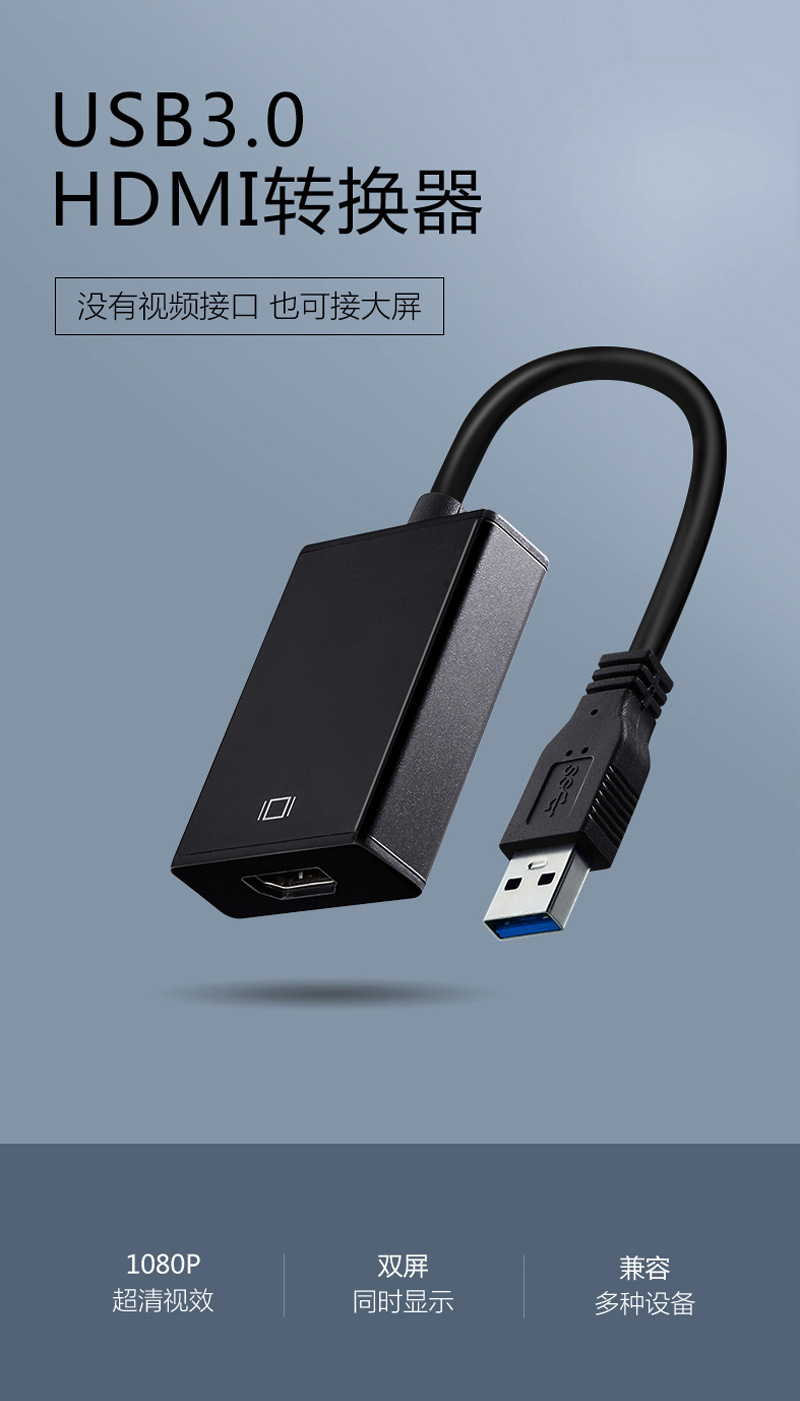 USB3.0转HDMI视频转接线 USBTO HDMI高清转换器1080P内置驱动高清