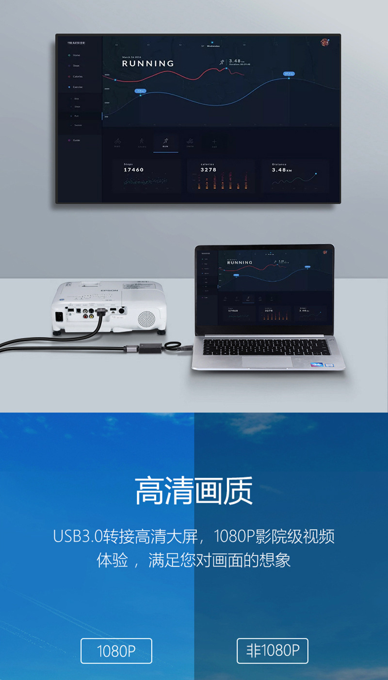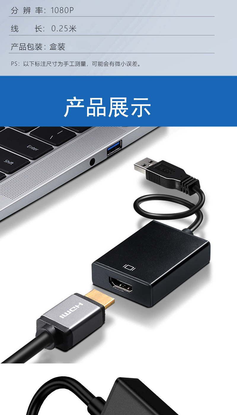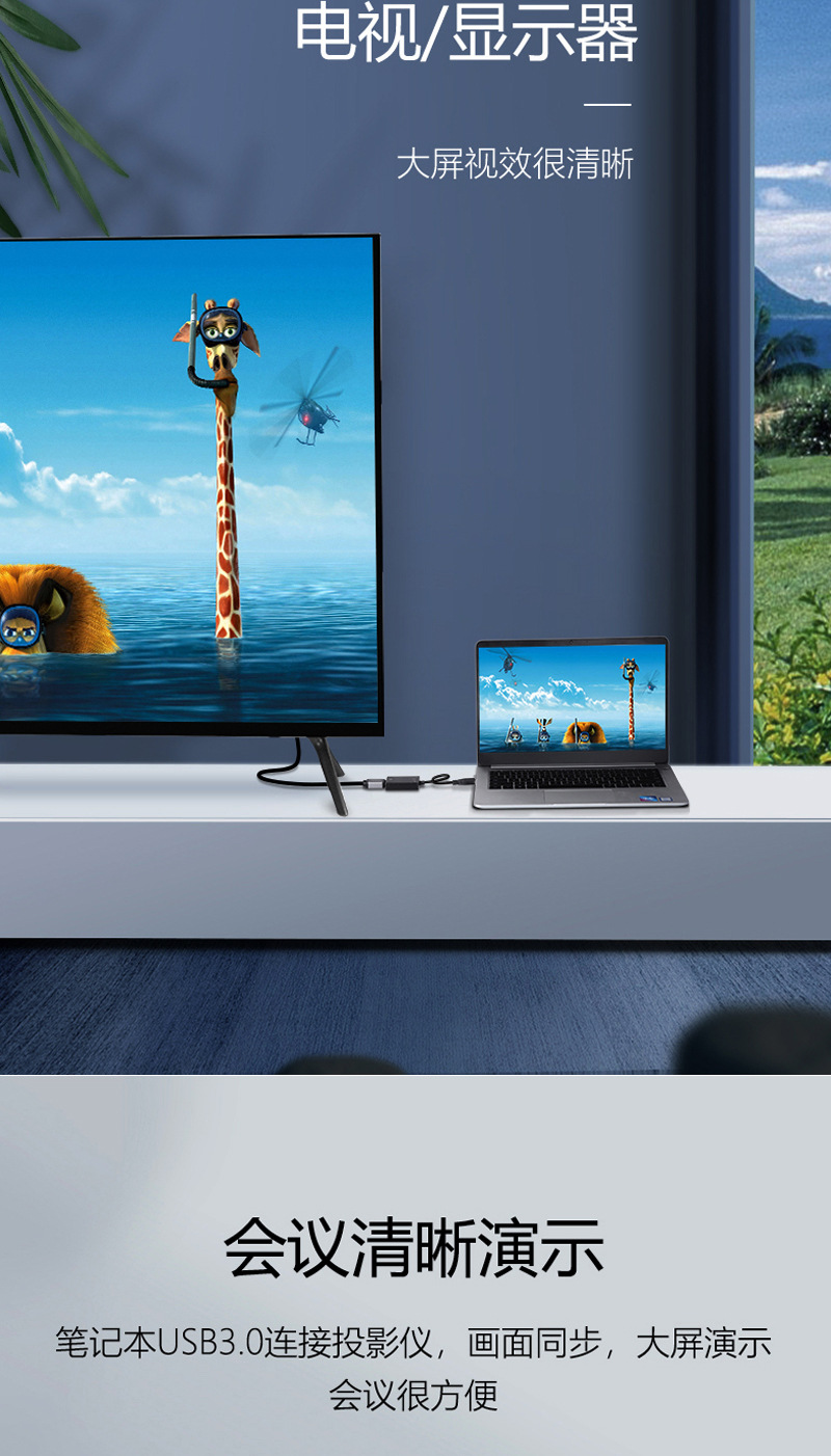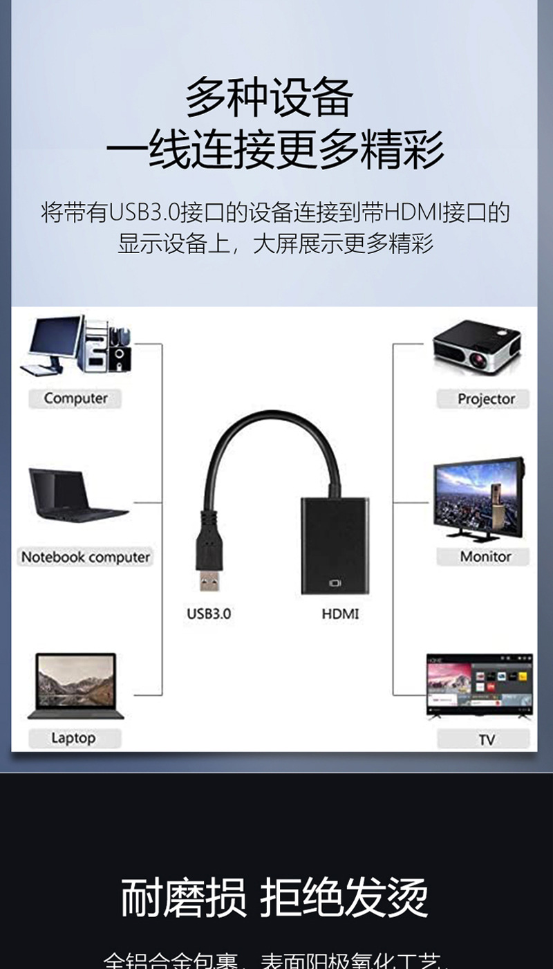 USB3.0转HDMI视频转接线 USBTO HDMI高清转换器1080P内置驱动高清