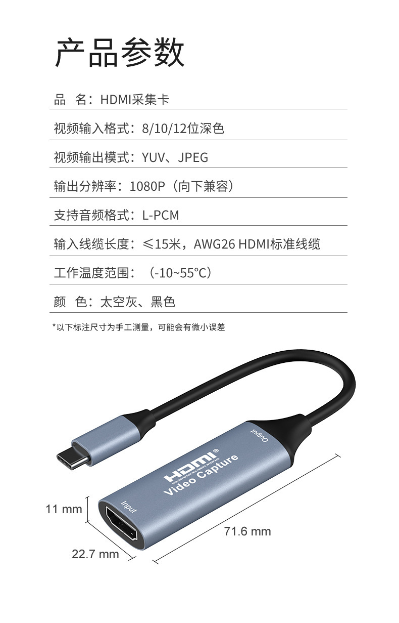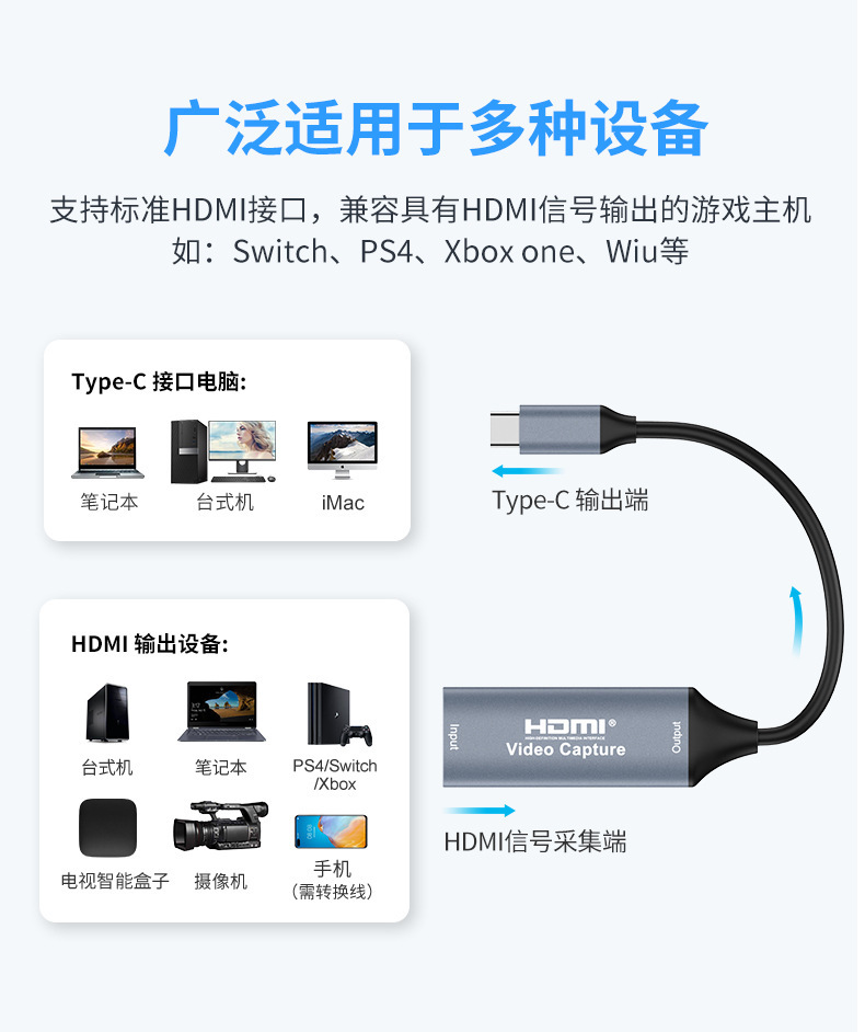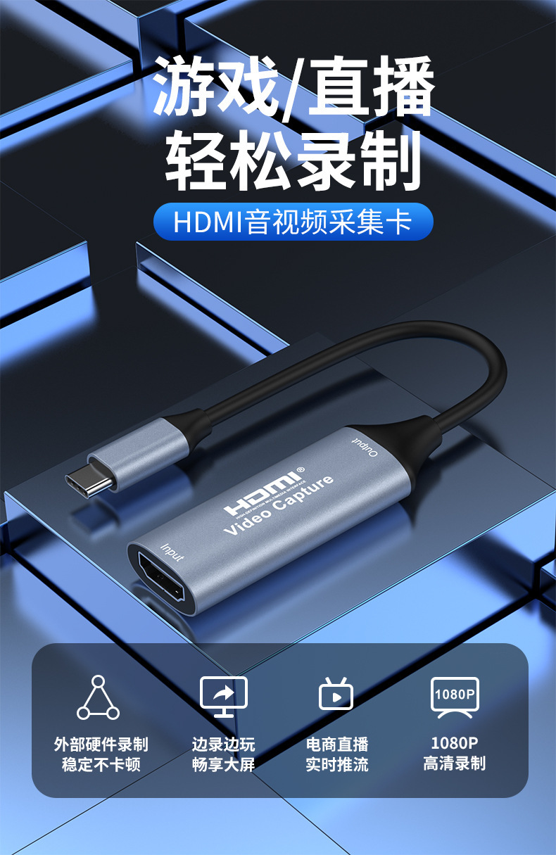 TypeC视频 采集卡手机电脑游戏直播伴侣HDMI高清TypeC 采集卡相机