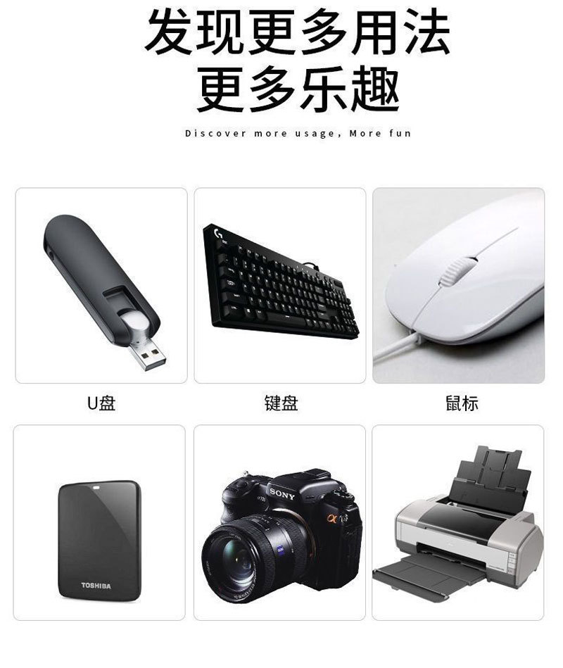 - 接口形式:Type-c OTG转接头(金色)