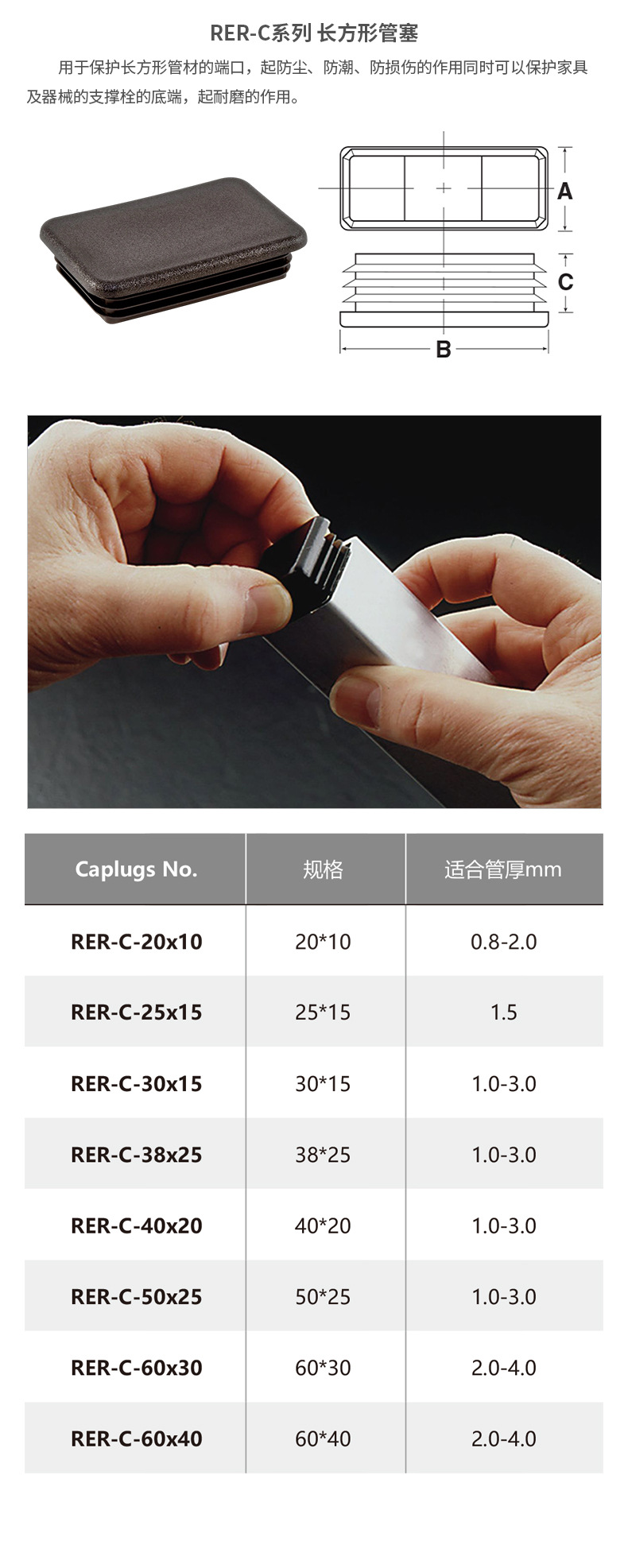 Caplugs安歌思RER-C系列矩形管塞塑料堵头扣盖椅子脚套内塞封头堵