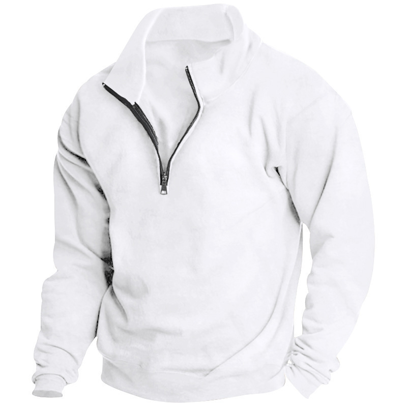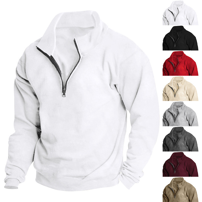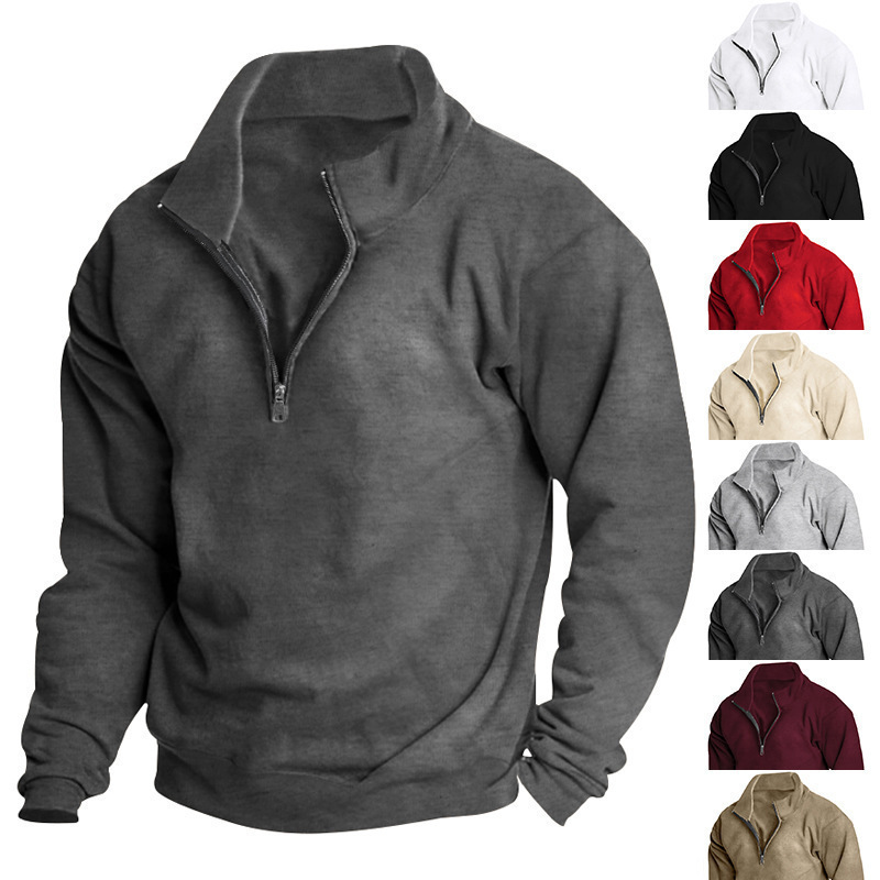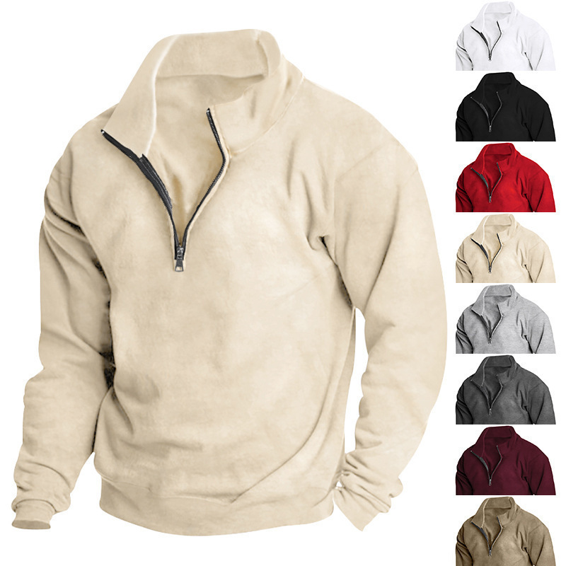 跨境外贸立领套头男士卫衣宽松休闲抓绒卫衣铁质拉链卫衣厂家批发