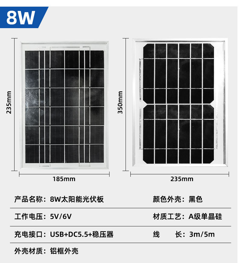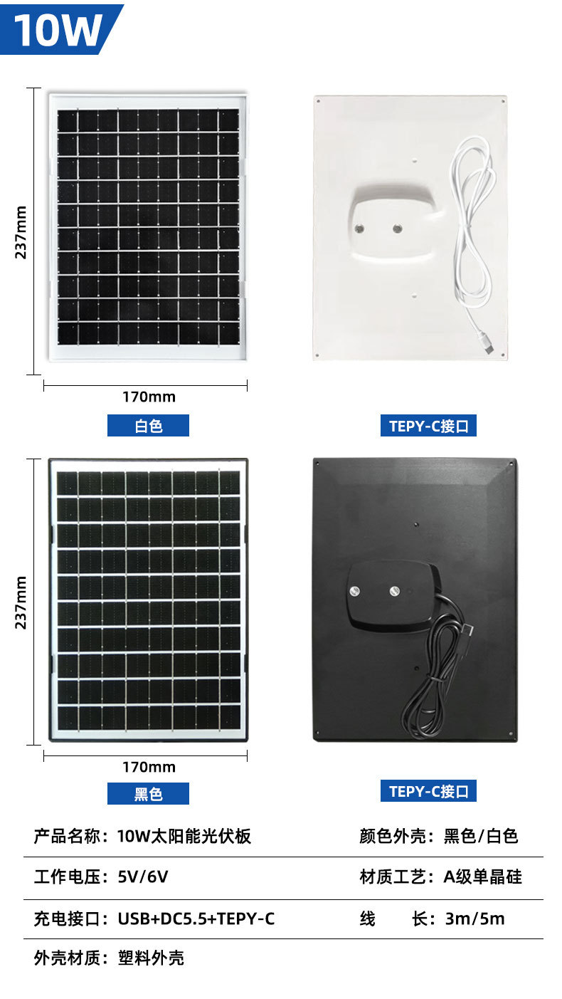 太阳能光伏板小型组件发电系统6V10W单晶户外移动电池充电板批发