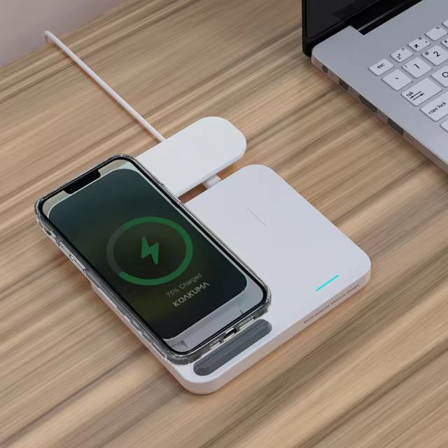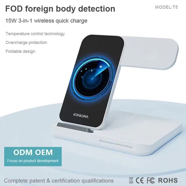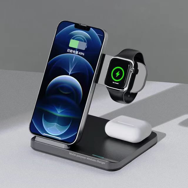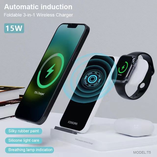 新款上市多功能三合一智能台式无线充15W磁吸折叠式 桌面手机支架