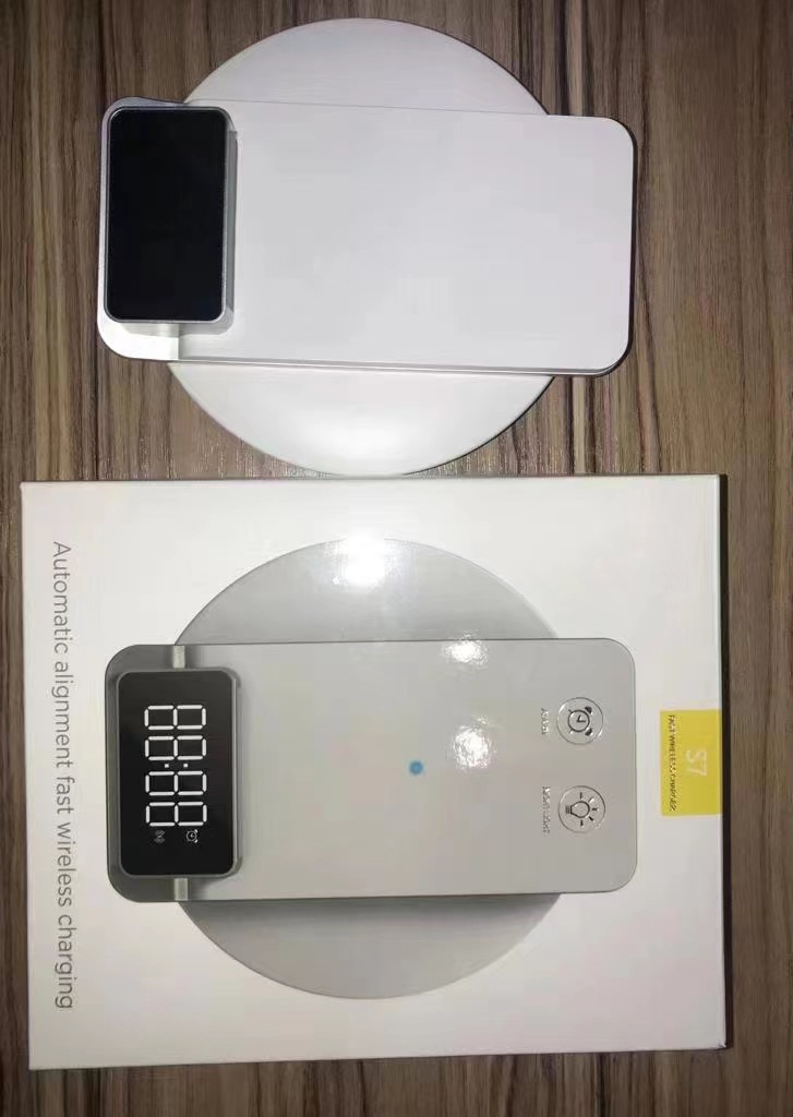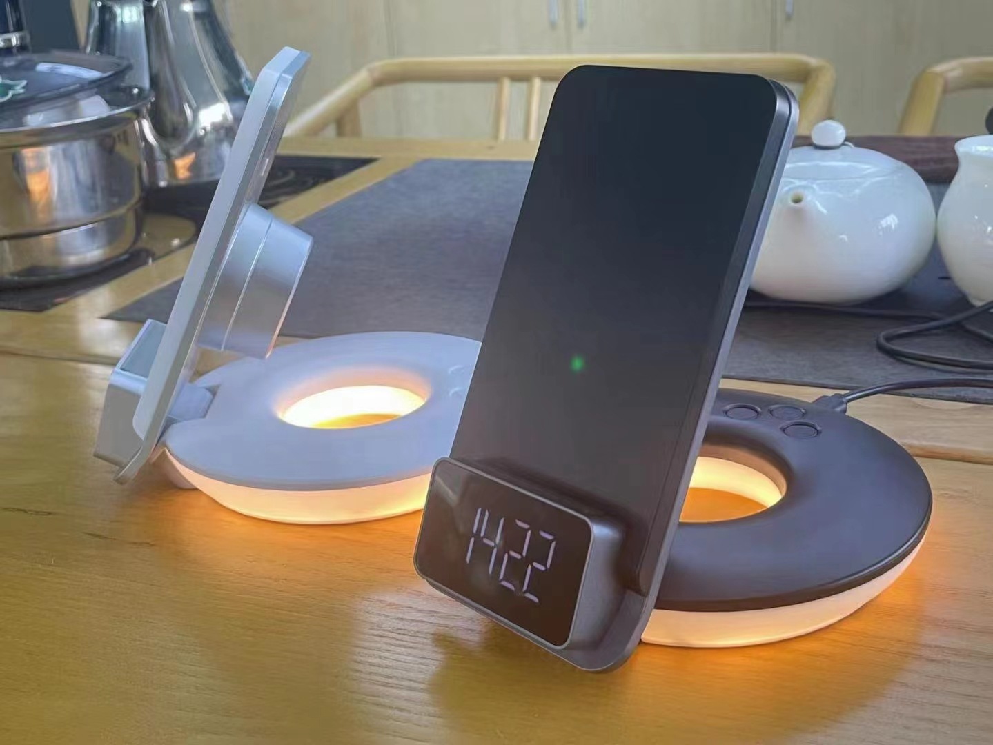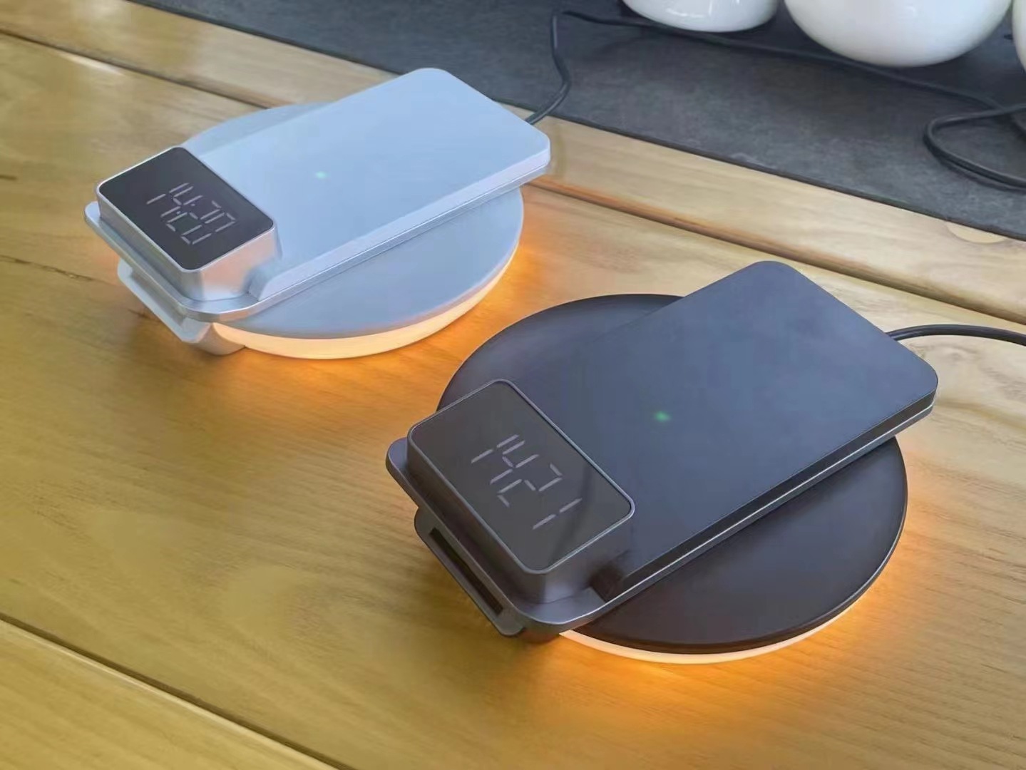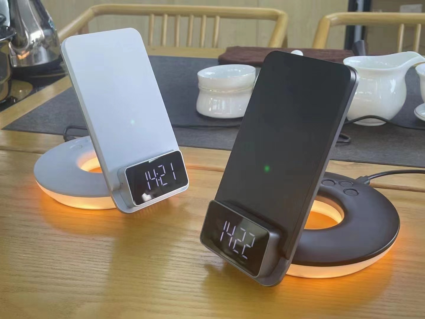 热卖三合一无线充电带闹钟手机快充多功能时钟床头台灯智能小夜灯
