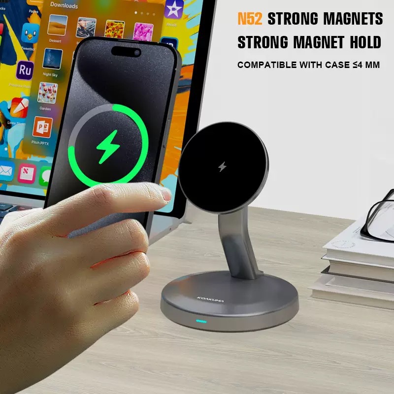 新款桌面手机支架15W快充 车载无线充电器 台式便携磁性直播支架