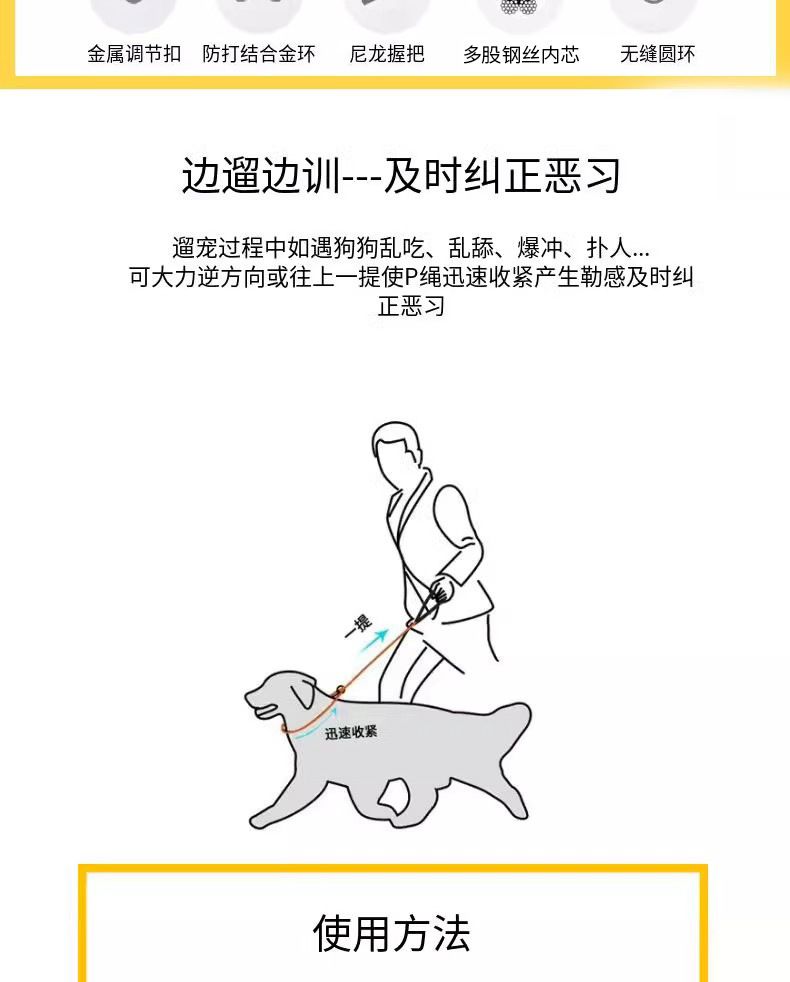 小中大型犬狗绳狗狗牵引绳一体式P绳防爆冲P链不勒手遛防缠绕伸缩