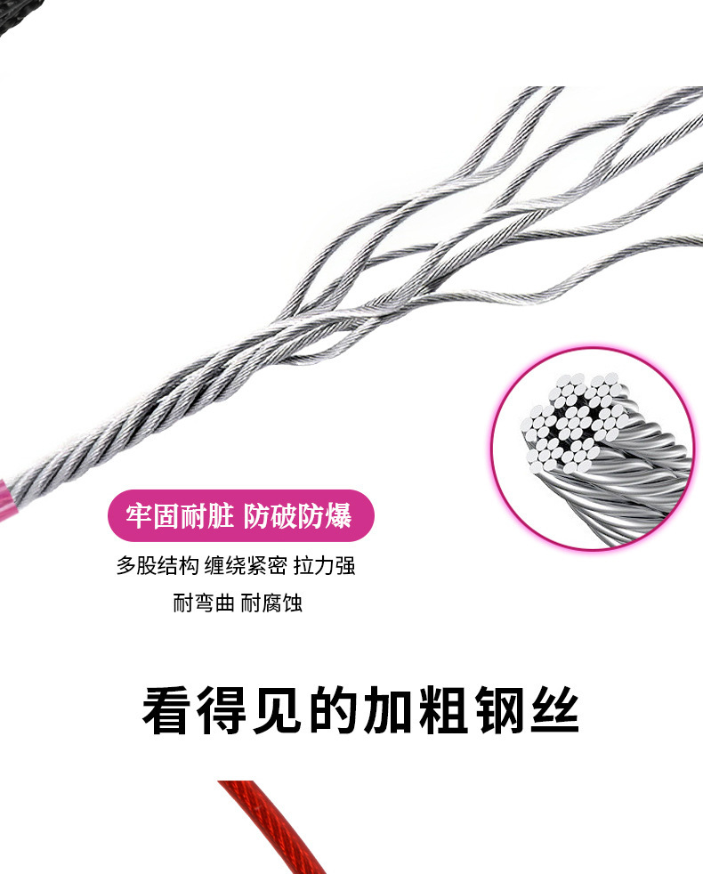 - 颜色:透明PVC手柄P绳--玫红色双扣