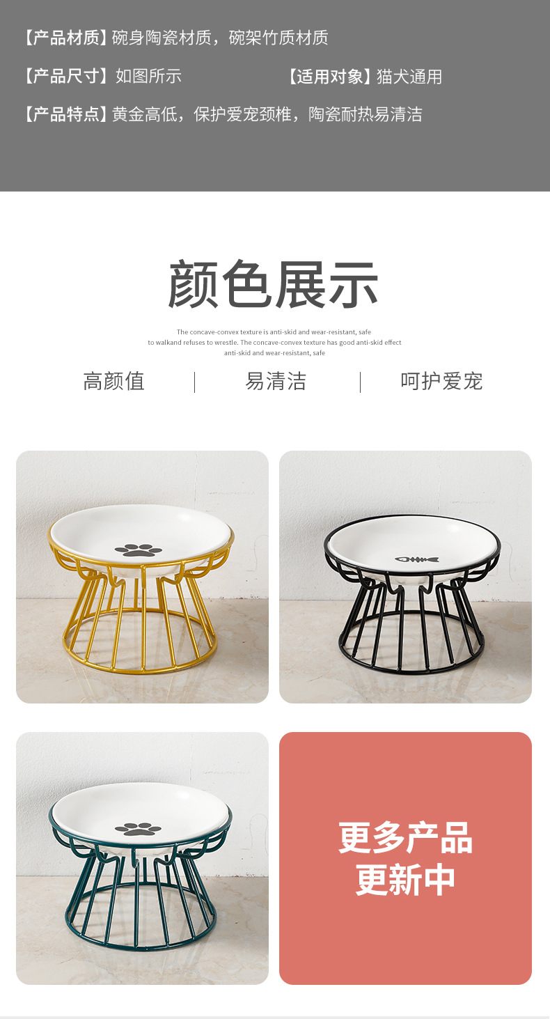 宠物陶瓷碗北欧猫碗高脚陶瓷猫粮碗零食罐头盘防颈椎防打翻猫食盆