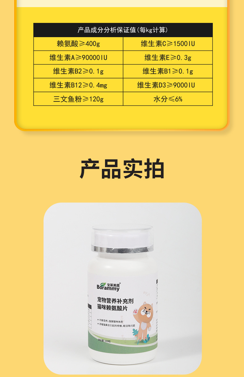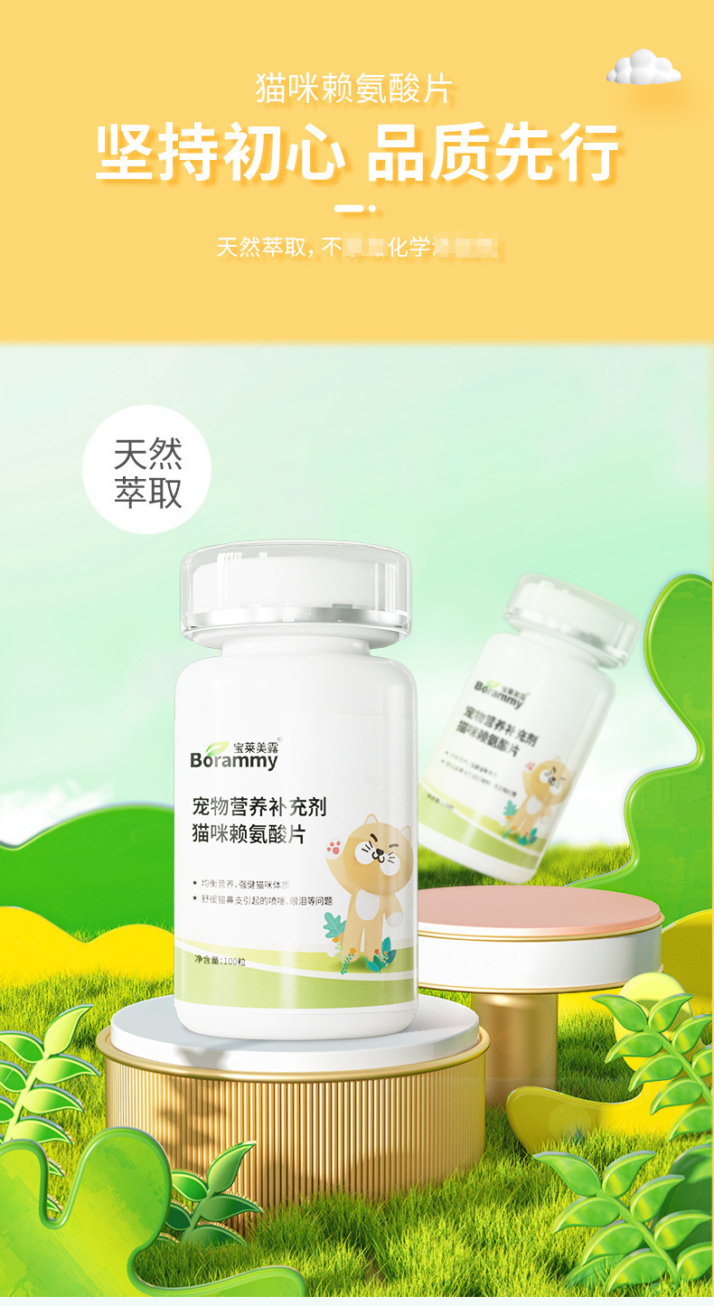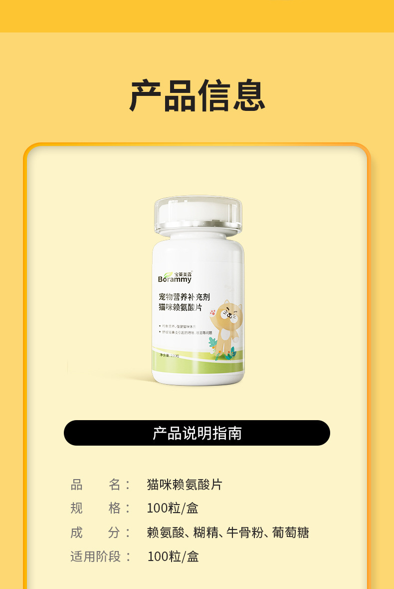 代发宝莱美露猫咪营养补充剂猫赖氨酸赖氨酸片100粒幼猫成猫通用