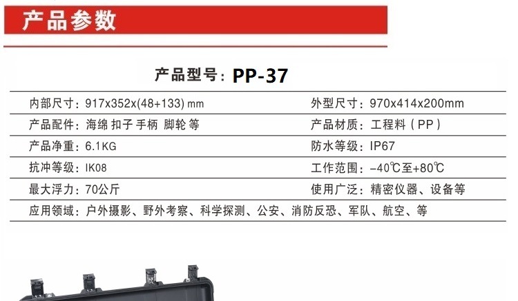 PP-37塑料手提箱耐刮抗压坚固防护箱便携式收纳箱加厚仪器设备箱